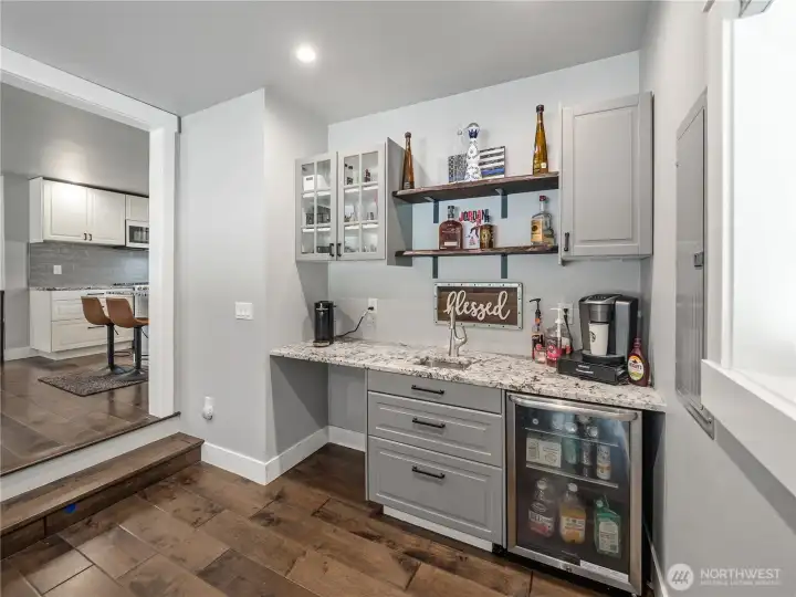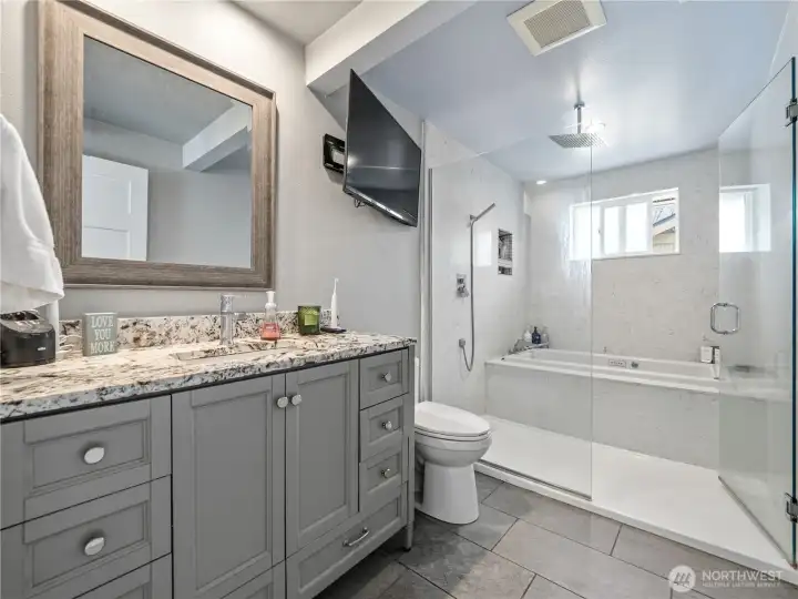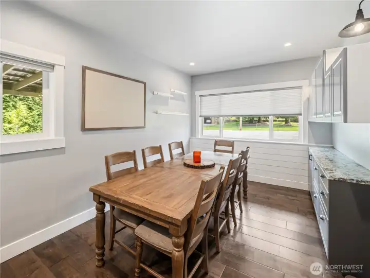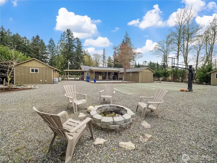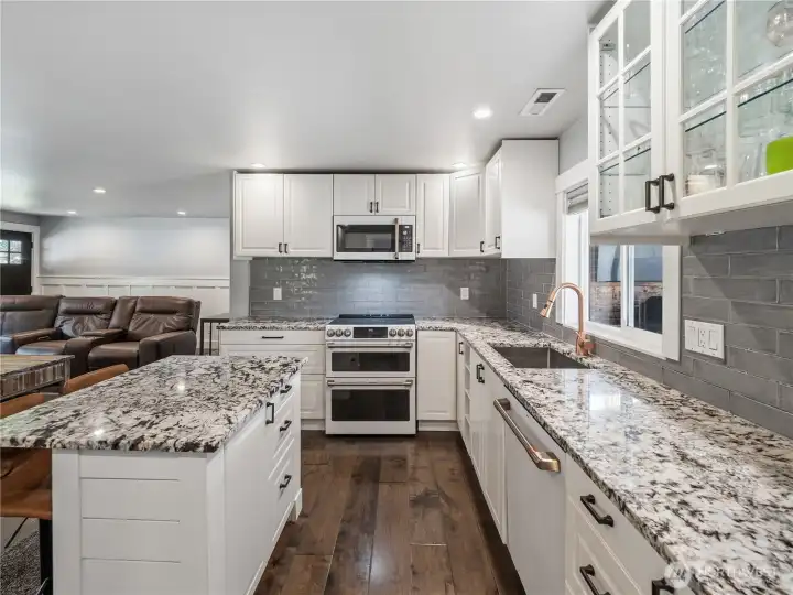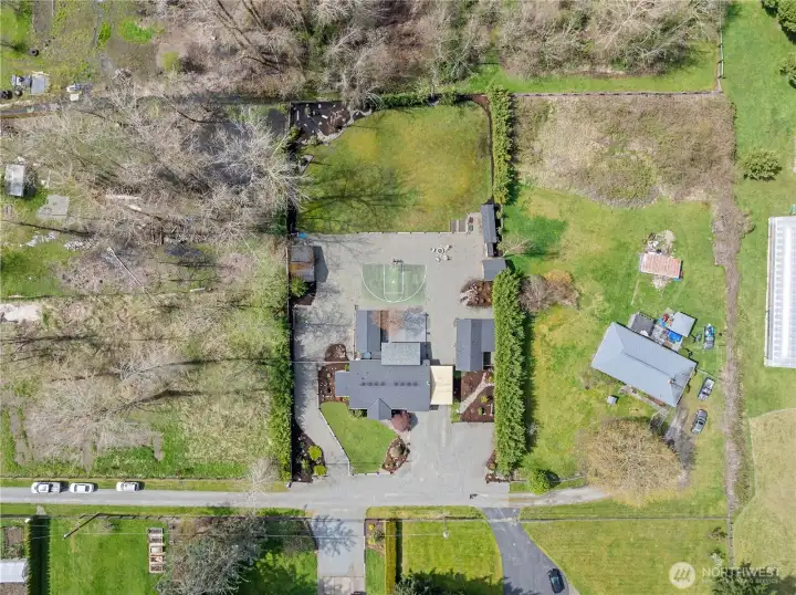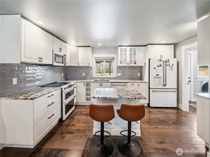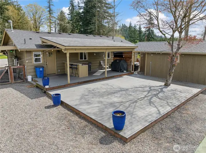 Completely renovated (from the studs out in 2019) Enumclaw rambler on a pristine 32,571SF lot w/ Mt Rainier view offering 2,020SF of living space and 3.25 total baths. Primary suite w/ custom water closet tub & shower, dual sink vanity & vaulted walk-in closet. Detached 290SF junior sweet w/ vaulted ceiling plus a detached double den/office perfect for all your work/school from home needs. Updated kitchen w/ granite countertops, island seating & GE Cafe' appliances opens to a large living room and dining room with built-ins and wet bar. All new plumbing & wiring in 2019 along with a new roof & windows. Outside you'll find 2 garden sheds, an oversized chicken coop, beautiful mature landscaping, sports court, large, covered deck w/ 1-year old hot tub included. 1-car attached carport, wired for EV charging & generator plug. Tons of extra vehicle parking with room enough for your RV. Xfinity and City of Enumclaw water. A great close-in country setting well suited for multi-generational living & year-round entertainment.