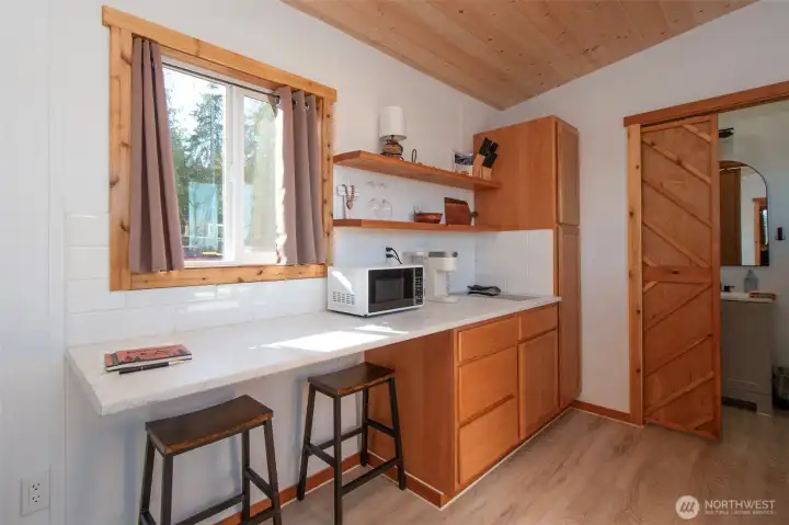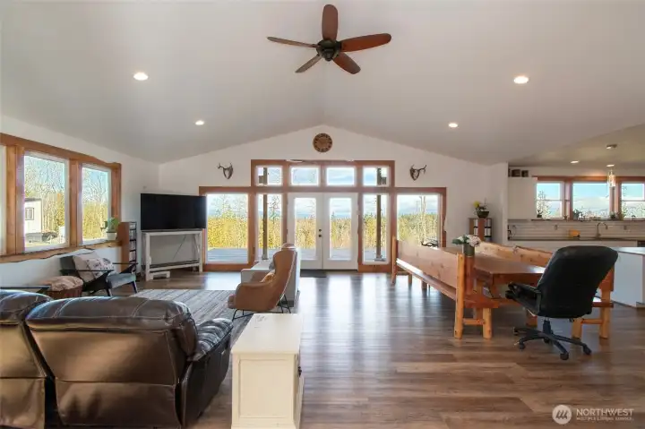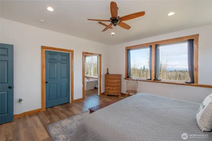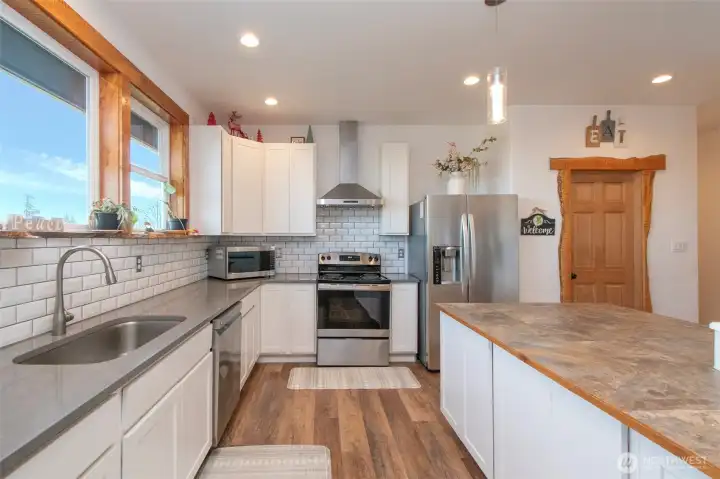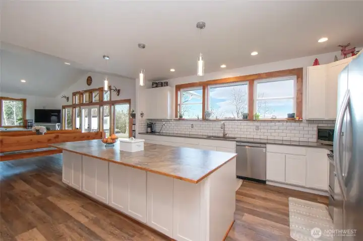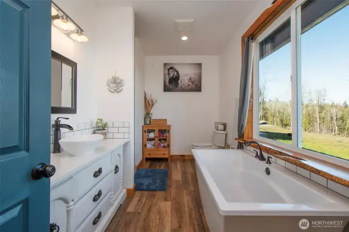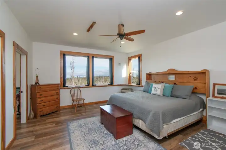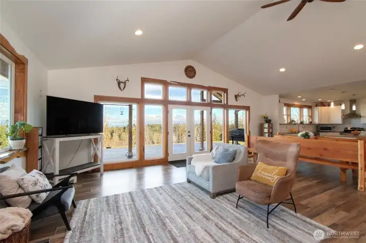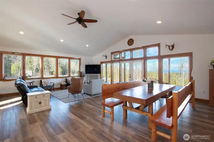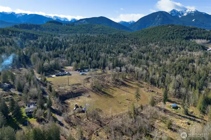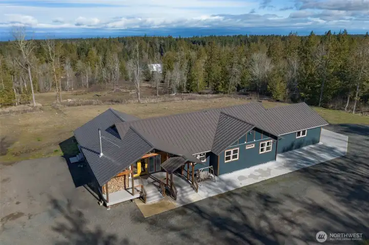 Morning light spills across 10 sun-drenched acres, where sweeping views stretch over the Strait of Juan de Fuca to Canada. Tucked between Port Angeles and Sequim in the Olympic Peninsula’s coveted sun belt, this is a place where days unfold with ease and possibility. A custom Craftsman home welcomes you beneath a grand covered entry. Inside, natural light fills the space, dancing across warm finishes and gathering around a cozy wood-burning stove, with a dedicated wood room ready for Northwest seasons. The kitchen is the heart of it all—anchored by a striking 10-foot island, walk-in pantry, and expansive windows that frame the water beyond. The primary suite offers a quiet retreat with serene views, a soaking tub, and walk-in shower. Below, a generous crawlspace invites ideas—canning, hobbies, or additional storage. Outside, the land opens wide with opportunity. Ten acres offer space for a future home, barn, or hobby farm, while the northern portion presents potential for income or investment. A portable vacation rental and full RV hookup create flexibility for guests or seasonal living. A year-round creek traces the western edge, where evenings bring stillness, star-filled skies, and the soft rhythm of nature. Thoughtful details—like invisible fencing, an exterior hot-water spigot, and quilted maple live-edge trim—complete the setting. Here, at the gateway to Olympic National Park, life feels both grounded and expansive.