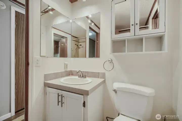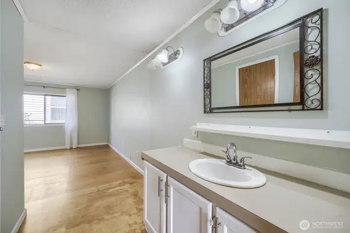 Private primary bath with generous counter space and convenient layout.