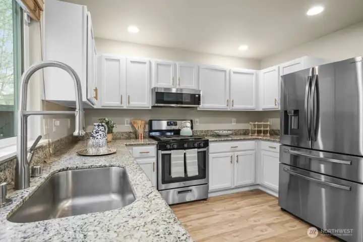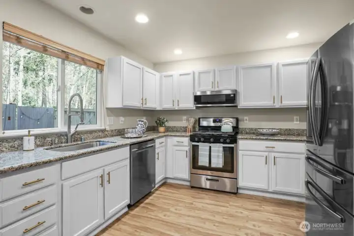 Welcome home to this beautifully updated 4-bedroom plus bonus room, 2.5-bath residence in the highly sought-after Silver Firs community. Thoughtfully designed with a functional and open layout, the main level offers formal living and dining spaces that flow seamlessly into a spacious kitchen and inviting family room with a cozy gas fireplace. This home has been meticulously maintained and upgraded for modern living, featuring brand new interior paint, new carpet, updated kitchen finishes, and newer appliances. Major systems have also been thoughtfully addressed, including a recently serviced furnace, approximately 5-year-old roof, Moen smart water leak shutoff system, for added peace of mind. A Tesla charger is installed, offering convenience for electric vehicle owners.Enjoy a private, fully fenced backyard backing to a greenbelt, providing a peaceful setting with natural wildlife views. The home is ideally positioned within the Everett School District, including a highly rated elementary and High school. Location is a standout — just a short walk to the Amazon shuttle stop and a quick drive to the Microsoft connector, Mill Creek Town Center, YMCA, and everyday shopping including Safeway and Fred Meyer. Easy access to Hwy 9, I-5 and I-405 makes commuting simple.The Silver Firs community also offers neighborhood amenities including a basketball court and children’s play area, enhancing the lifestyle this home provides.Pre-inspected for buyer confidence.