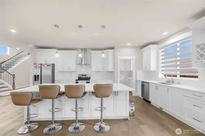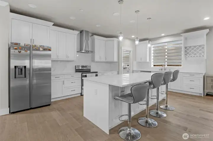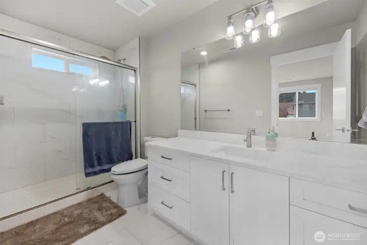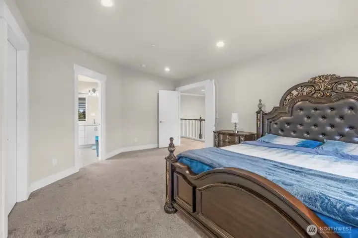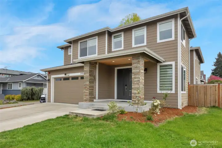 Modern elegance meets practical convenience—your dream home awaits! Tucked away yet within walking distance of the community center, shopping, city amenities, and a gym, this home offers it all. It features five bedrooms, each with its own bathroom. The open-concept kitchen includes a separate "spice kitchen" to keep cooking aromas contained. The main floor bedroom includes a 3/4 bathroom and views of the spacious backyard, which offers plenty of room for play, entertaining, and even RV parking. Located just 5 minutes from Hwy 167 and I-405, you are within 20 minutes of downtown Seattle, Bellevue, and SeaTac Airport. This is a must-see home!