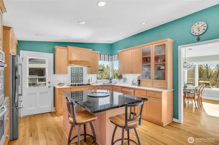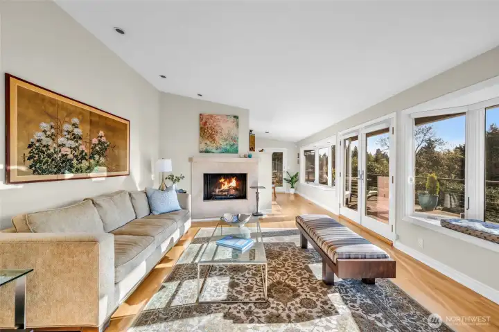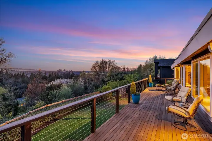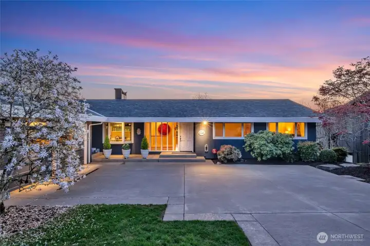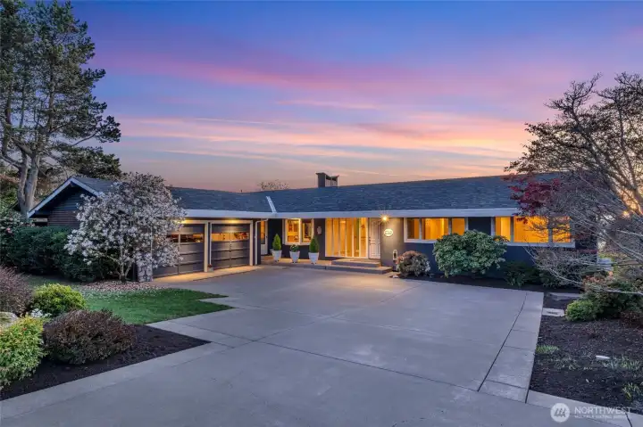 Located on one of Mercer Island's most sought after streets, this mid-century rambler offers a rare combination of beautiful western views and a level backyard that's perfect for a pickup game of soccer or tending the stunning perennial garden. The main floor features level-in living, with a spacious eat-in kitchen full of potential, and a light-filled living room with French doors opening to a generous Ipe deck. It's the ideal spot for enjoying Friday Happy Hour while watching a fiery sunset over the Olympic Mountains and the Seattle skyline. The primary suite enjoys those same beautiful views, complemented by a spacious bath featuring a jetted tub and radiant floor heating. Two additional bedrooms, a full bath, and laundry room complete the main floor. The bright walk-out basement expands your options with a large entertainment area, office space, craft room, and an additional bedroom and bath. Cozy up to the fireplace, play pool or continue the entertaining on the private ground-level patio that still captures glimpses of the city lights. Head to Starbucks for your morning coffee then straight to the trails of beloved Pioneer Park, both just right up the street. This is the kind of neighborhood where neighbors stop to chat during their evening stroll-- the best of Mercer Island living, right at your doorstep.