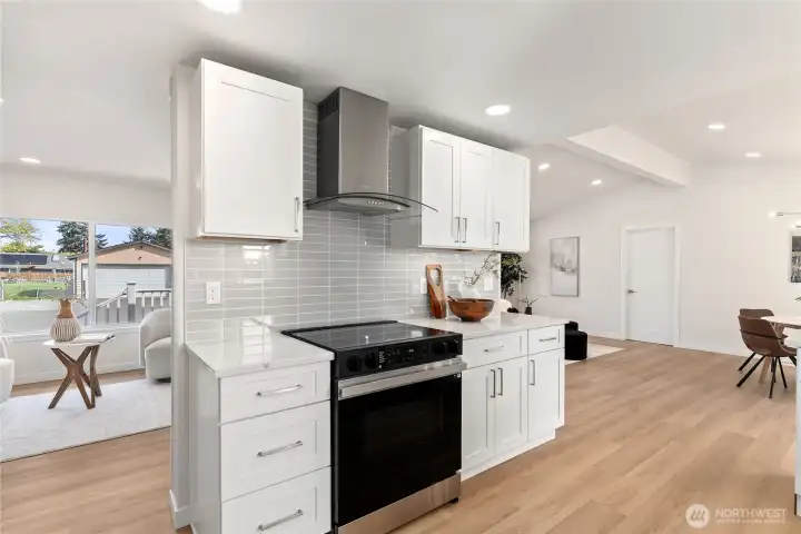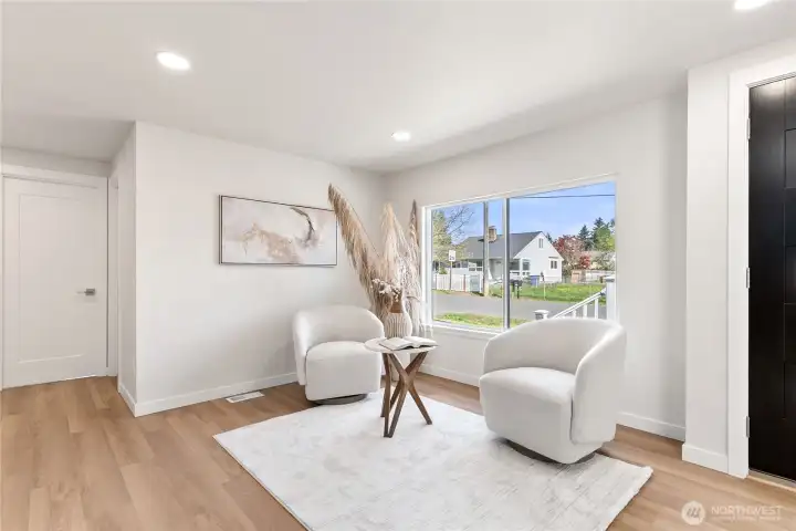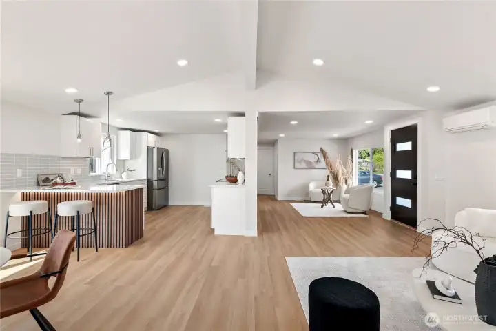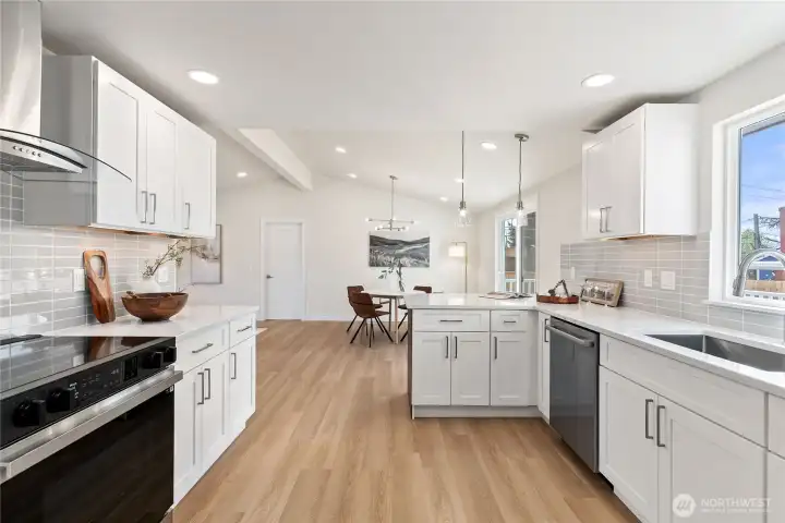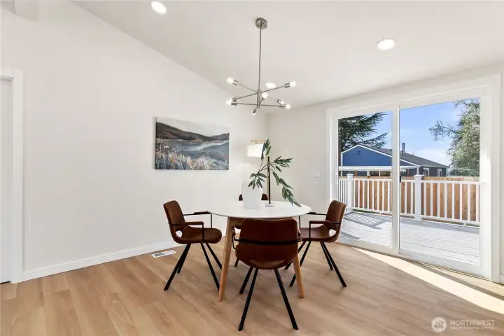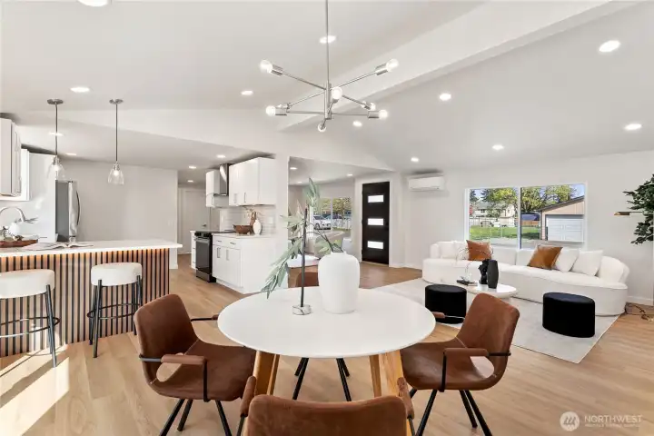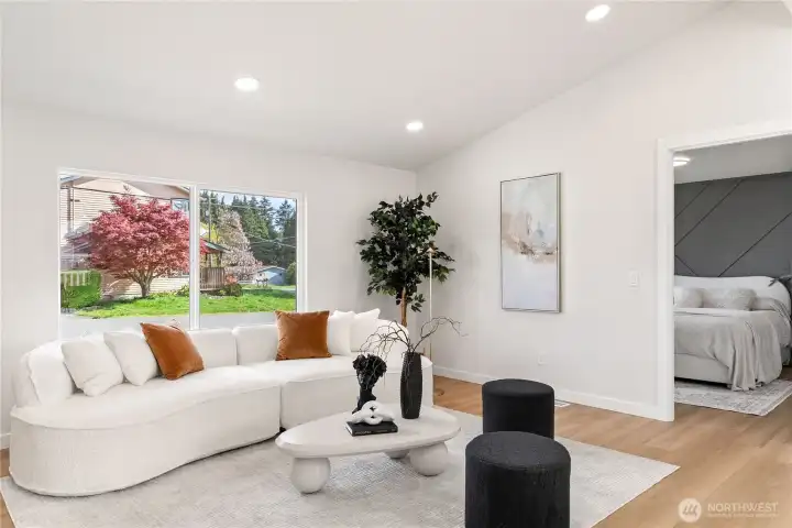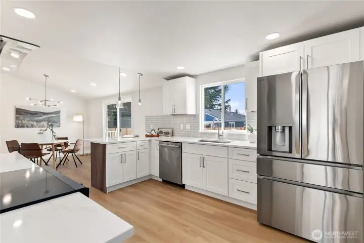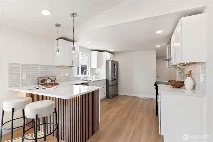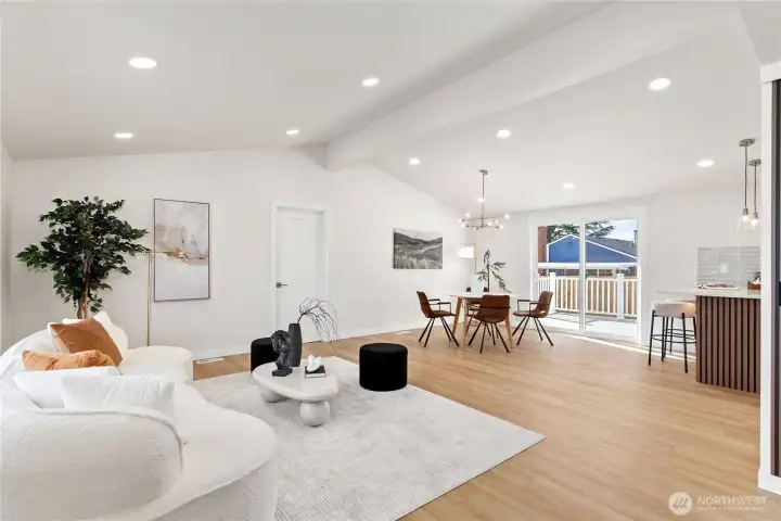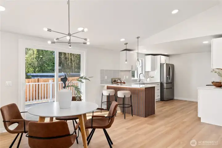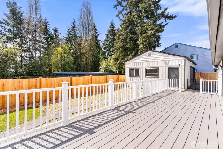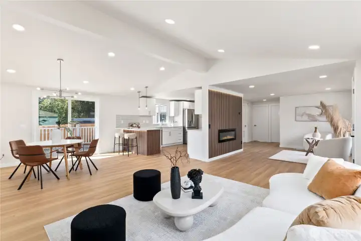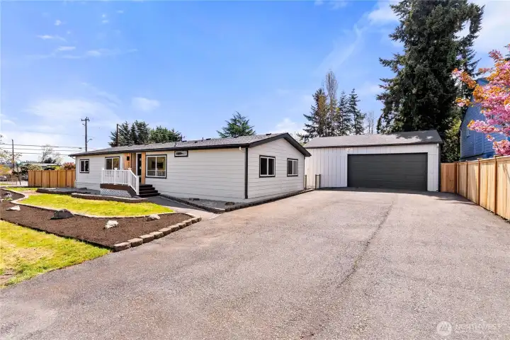 Must-see 3-bedroom, 2-bathroom home in the heart of Burien offering comfort, style, and exceptional functionality. Situated on a generous fully fenced lot, this property features a detached 700 sq ft garage/shop with additional storage space—perfect for hobbies, projects, or extra parking—along with an impressive oversized 320 sq ft deck ideal for entertaining and outdoor living.Step inside to a bright and inviting interior with vaulted ceilings and a spacious living room centered around a modern electric fireplace with a designer accent wall. The updated kitchen showcases a peninsula layout, custom backsplash, stainless steel appliances, and seamless flow into the dining area, creating a perfect open-concept gathering space. The stunning primary suite features a custom accent wall, walk-in closet, and a beautifully remodeled bathroom with a freestanding soaking tub and separate shower. The guest bathroom is equally refined with stylish tile work and upgraded lighting. Two additional well-sized bedrooms provide flexibility for guests, office, or lifestyle needs. Located just minutes from shopping, dining, parks, and major commuter routes, this home offers quick and easy access to Seattle and Sea-Tac Airport while maintaining a peaceful residential feel. A rare combination of space, updates, and convenience—truly a must-see opportunity.