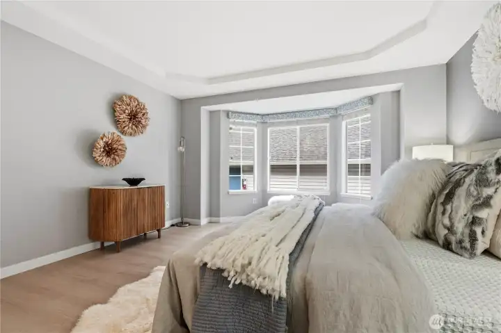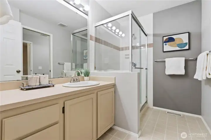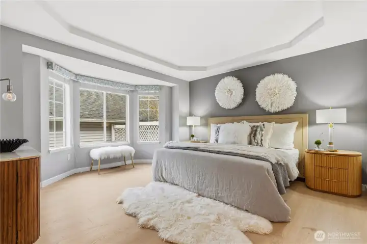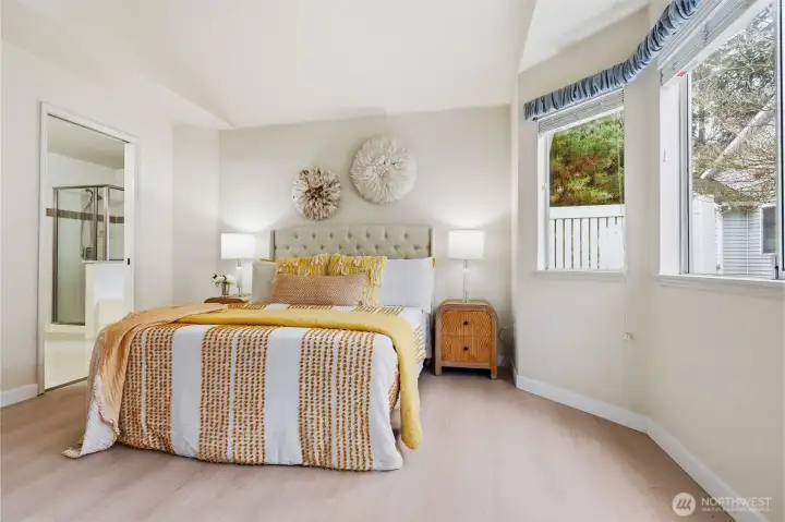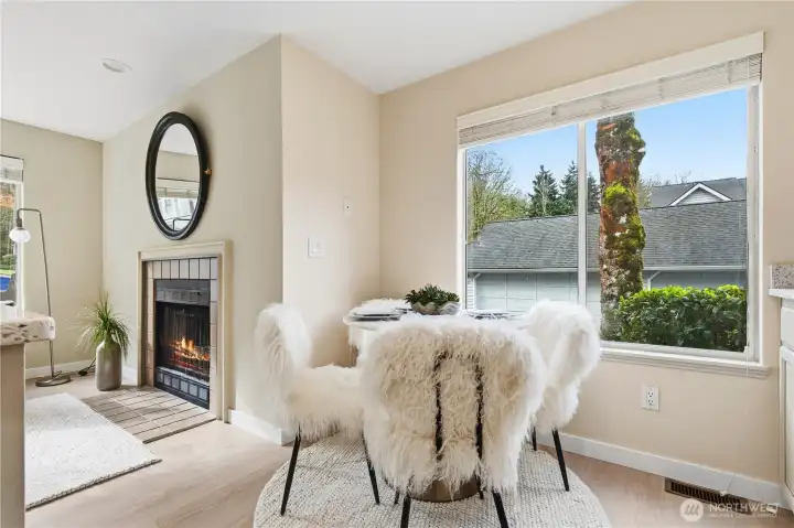 Welcome to Summerset Creek! This beautifully updated, light-filled end-unit townhome is ideally located in the highly sought-after Bellevue School District, within walking distance to Tyee Middle School and Newport High School. The main level features two spacious bedrooms, including a private primary suite with vaulted ceilings and an en-suite bath—perfect for comfortable main-floor living. Recent upgrades include fresh interior paint, new flooring, creating a clean, modern, and move-in-ready feel throughout. Enjoy an updated kitchen that opens to a cozy family room with a classic wood-burning fireplace, along with a large and open formal living and dining area—ideal for both everyday living and entertaining. Step outside to a new Trex-style back deck, perfect for outdoor dining or relaxing. Upstairs, you’ll find a generous third bedroom with a walk-in closet, offering flexible use as a guest suite, bonus room, or media/TV room. A detached two-car garage adds convenience and extra storage. Conveniently located near freeways, shopping, dining, and everyday amenities, this home truly combines comfort, functionality, and an unbeatable location. HOA dues include water/sewer and garbage.