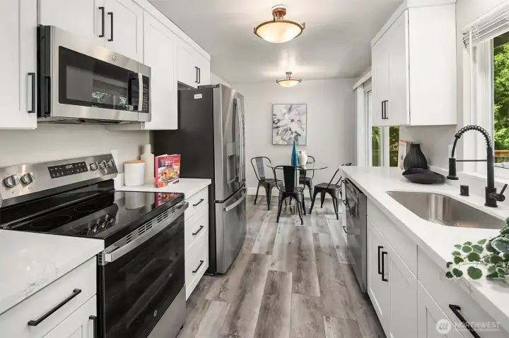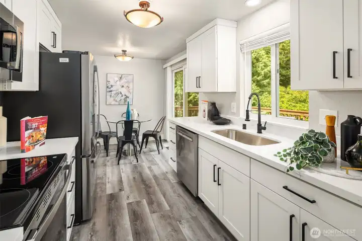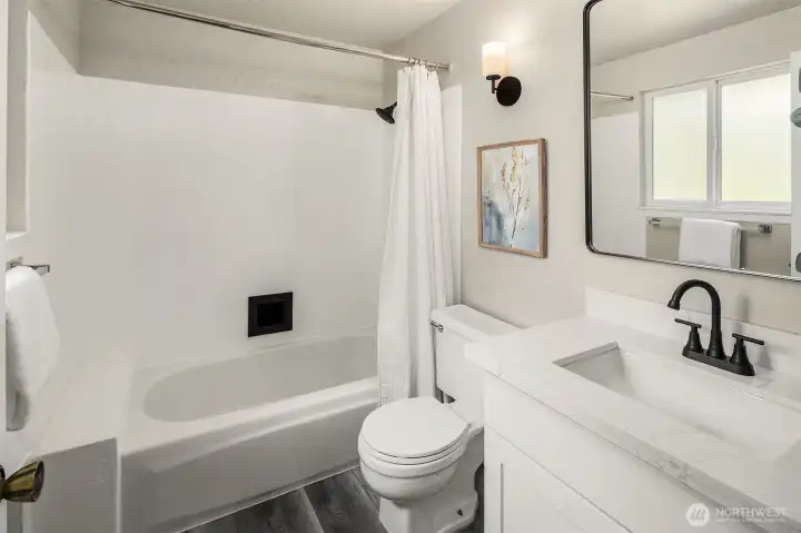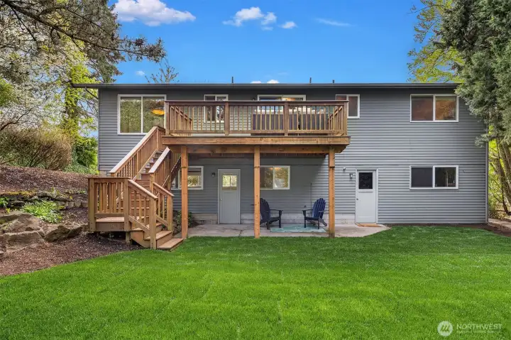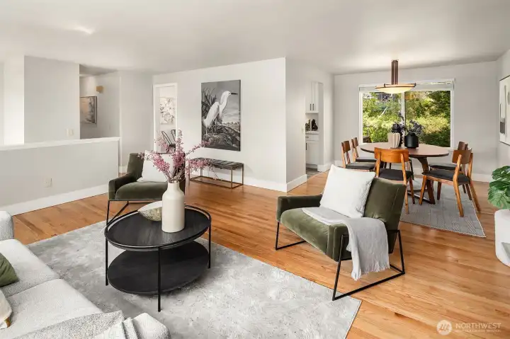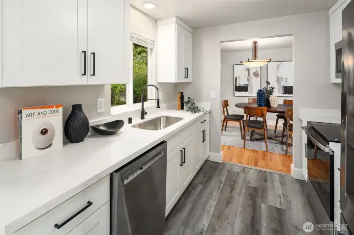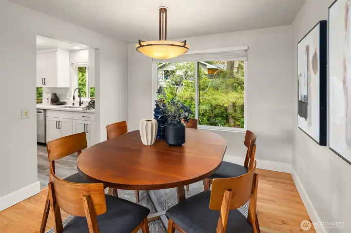 Some houses check boxes. This one raises the bar. Tucked into one of Seattle's most beloved pockets, this Meadowbrook home delivers 1,800 square feet of living space that feels anything but 1974 — and sits in a location that's genuinely hard to beat. John Rogers elementary, Jane Adams middle school, and Nathan Hale high school all just blocks away. Meadowbrook Community Center and Park right there. Quiet streets, strong community, the kind of neighborhood where people put down roots and never look back. The curb appeal stops you before you even reach the door. Beautifully landscaped 7,700 square foot lot, lush manicured lawn front and back, and a backyard that actually delivers — flat, generous, and big enough to do something with. Summer nights, play, dogs, entertaining — it works for all of it. Inside, rich gleaming hardwoods run through the upper level. New LVP and carpet in all the right places, fresh paint throughout, and a kitchen that flat out works — new cabinets, new countertops, new GE appliances, new fixtures. Clean, functional, and exactly what a kitchen should be. Both bathrooms fully updated with new vanities, countertops and fixtures. The master suite is a genuine retreat — private, with its own beautifully updated bath. Under the hood this house is equally dialed. Brand new roof, new 200-amp electrical panel — the kind of upgrades that separate a truly move-in ready home from everything else. Two-car garage rounds it out. This one has it all. Come see it.