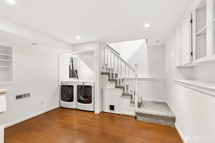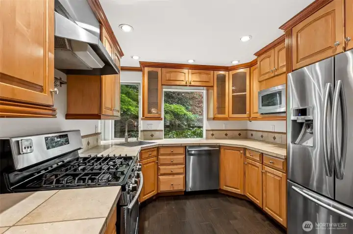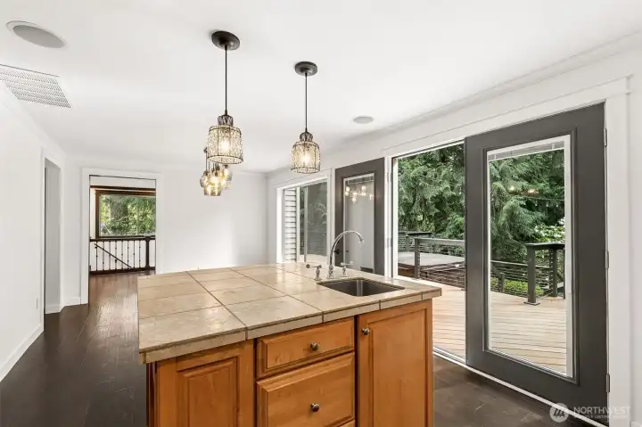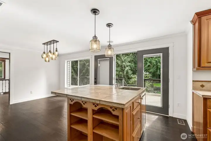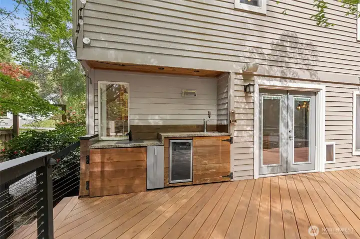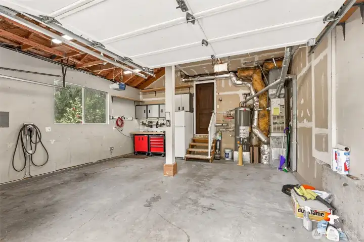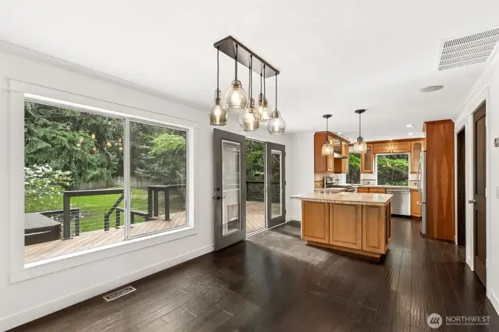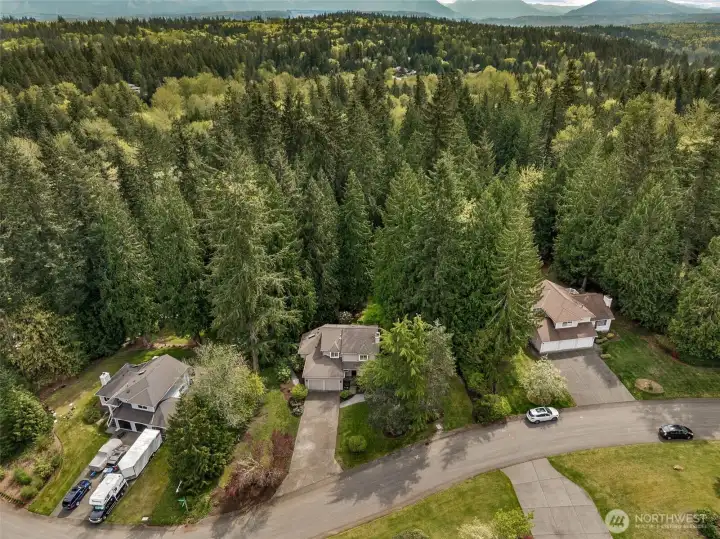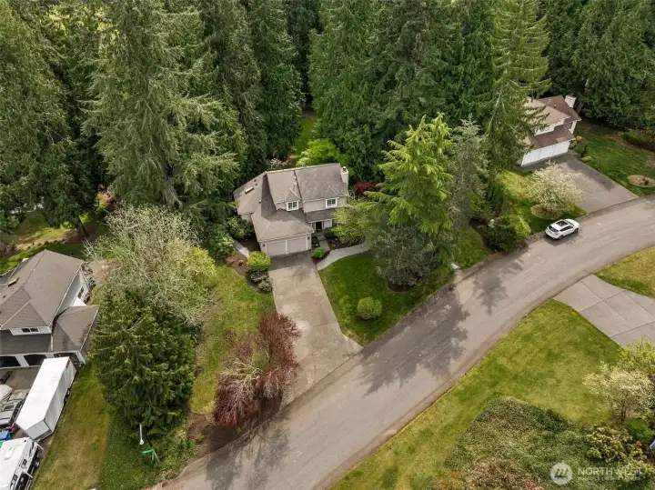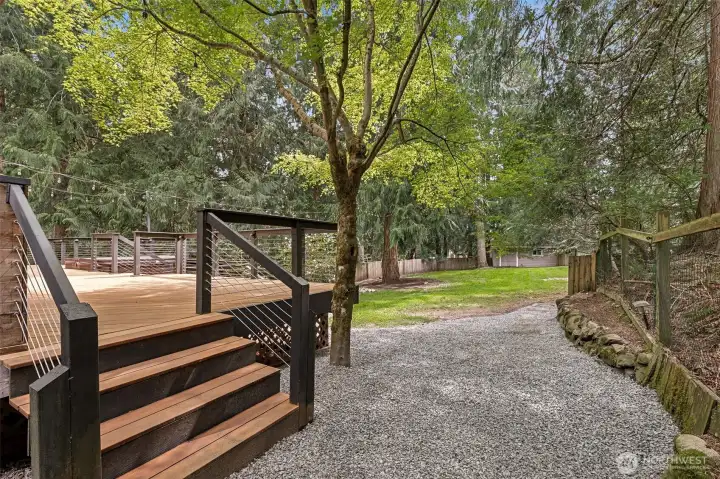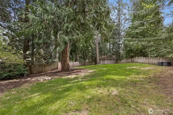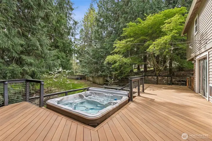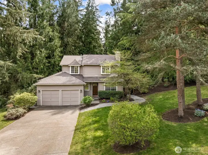 Enjoy the peace and privacy of this beautiful 29,970 square foot private lot, perfectly nestled in a serene, wooded setting. Ideally located just 10 mins from DT Redmond & Hwy 520, this home offers the rare combination of tranquil retreat living w/ unbeatable urban convenience. This warm & inviting LR centered around a cozy fireplace is the perfect spot to unwind. The open kitchen & dining areas are flooded w/ sweeping views of nature, creating an effortlessly cheerful everyday living space. The open-concept kitchen features SS appliances & a large prep island, ideal for cooking & entertaining alike. Fresh interior paint and beautiful engineered HW flooring flow throughout the entire main flr. A comfortable family rm off the kitchen adds even more flexibility, while the fully finished basement has the laundry room and a space for a home office, craft room, workout space, or ultimate game room. Upstairs, the spacious primary bedroom boasts a huge walk-in closet & a beautifully updated en suite bath. Two additional bedrooms complete the upper level. Outside, your private backyard oasis awaits. The entertainment-sized deck features a relaxing hot tub and a stylish outdoor wet bar, all overlooking a large, fully fenced, wooded lot as your own personal escape. The powered backyard shed adds valuable storage and utility. Add'l highlights include indoor & outdoor speakers, an EV charger, generator hookup, a 2-car garage, & a long driveway w/ ample parking for everyone.