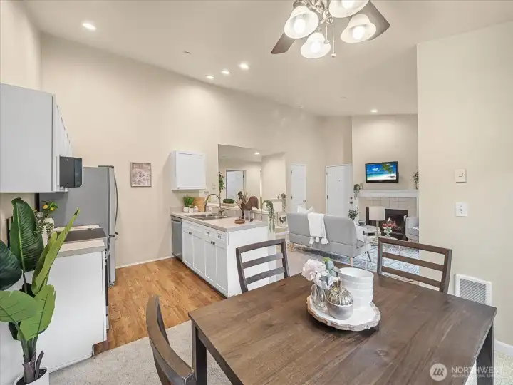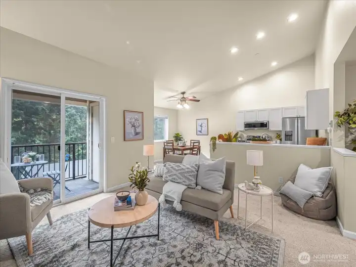 Top floor living with investment flexibility, this bright and spacious 2 bedroom 1.75 bath condo checks all the boxes. Located on the third floor, this unit features soaring vaulted ceilings that create an open, airy feel throughout the main living space. The open concept kitchen and living area is perfect for entertaining or relaxing at home. enjoy the convenience of a full size washer and dryer in unit, along with a smart layout that offers both comfort and functionality. for homeowners and investors, this property stands out with no rental cap, a rare and valuable opportunity in today's market. Ideally situated near Edmonds Community College, easy access to shopping, dining and commuter routes. Now is your opportunity to live or invest in this Lynnwood condo!