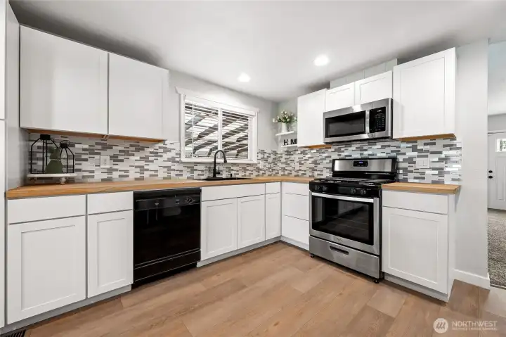 Beautifully remodeled 3 bedroom with over 1350 square feet! This home has too many upgrades to list! Featuring a new roof, exterior and interior paint, kitchen, appliances, flooring, bathroom, gutters and more! The furnace and water heater have been updated recently. You'll love the large living room, extending into the new spacious kitchen with a breakfast bar and room for a large dining table. New cabinetry, recessed lighting, tile backsplash, and fixtures! The dining/kitchen area has french doors that lead out to your private backyard and sitting area. Main floor, master suite with a bathroom located conveniently down the hall. Plenty of storage space throughout this turn-key home. Upstairs you'll find two more spacious bedrooms and an area that has potential to be a second bathroom. Kitchen appliances, washer, and dryer are all included. The furnace and stove are gas. Ample parking in the front and back of the home, along with covered parking under the carport. Plenty of room for a garden in the backyard. Enjoy relaxing on the fine patio or in the covered sitting area on a warm summer day. Amazing location close by to the beach, State parks, public transit, and shopping! Pride of ownership for 40 years!