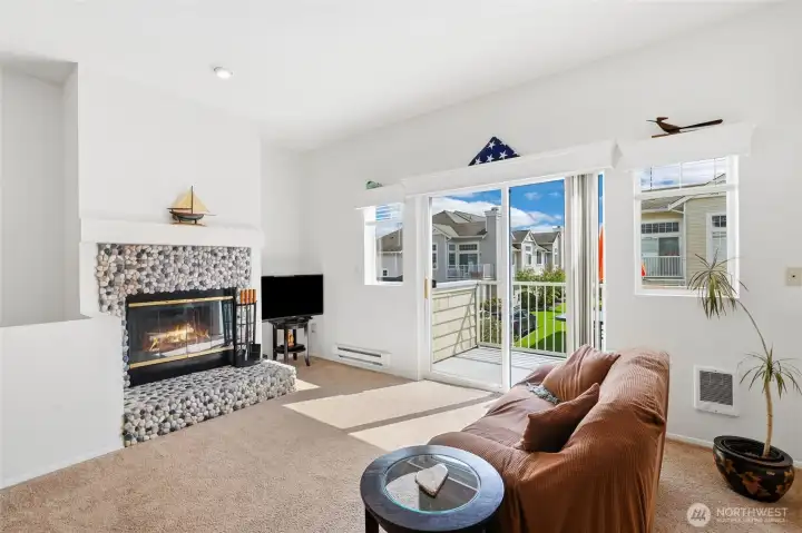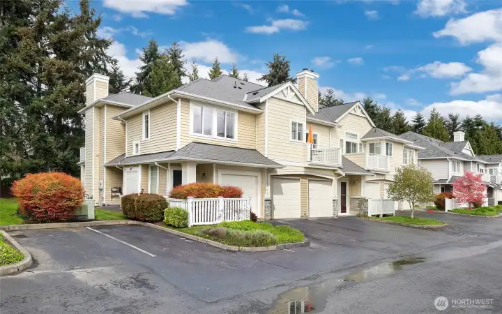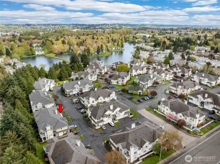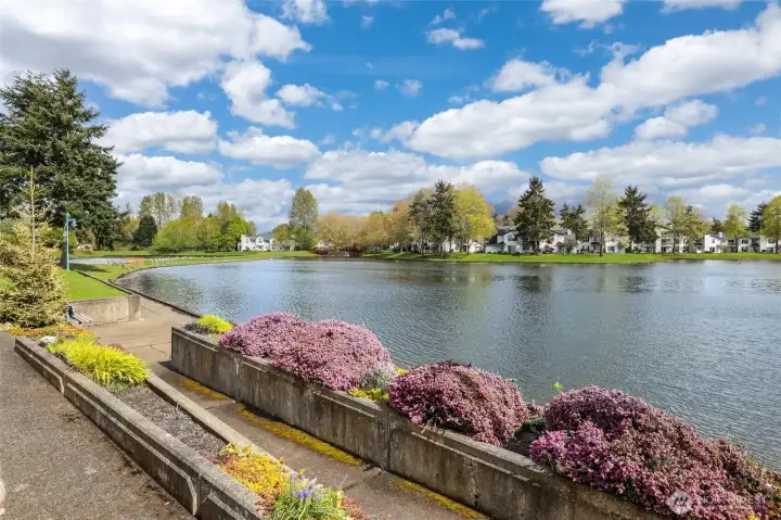Welcome to this light and bright townhome style condo in West Bay at The Lakes! Thoughtfully designed with tall ceilings and very functional floor plan. Features an open concept great room highlighted by the custom stone, wood burning fireplace. Lovely kitchen with plenty of cabinet and counter space. Large bedroom and walk-in closet. Spacious full bath and in-unit washer & dryer. All appliances stay. Relax on your balcony in this peaceful community. Attached garage has extra storage space plus plenty of guest parking available. Updates include: newer roof, entry way tile, kitchen faucet, bathroom sink & faucet, blinds in living room & kitchen, garage door opener and paint in most rooms. No Special Assessment. Clubhouse with kitchenette and entertaining space, fully equipped gym & sauna. Enjoy all that The Lakes in Kent has to offer, with sidewalks to stroll the grounds and nearby views of Mt. Rainier, wildlife, beautiful landscaping, spring flowers and fall color. Close proximity to I-5 and HWY 167, Interurban trail, transit, Light Rail and Sounder, Kent Station, Riverbend golf complex, ShoWare Center and Kent Valley Ice Center. Mortgage savings may be available for buyers of this listing.