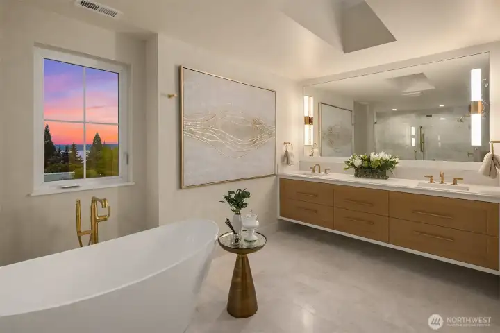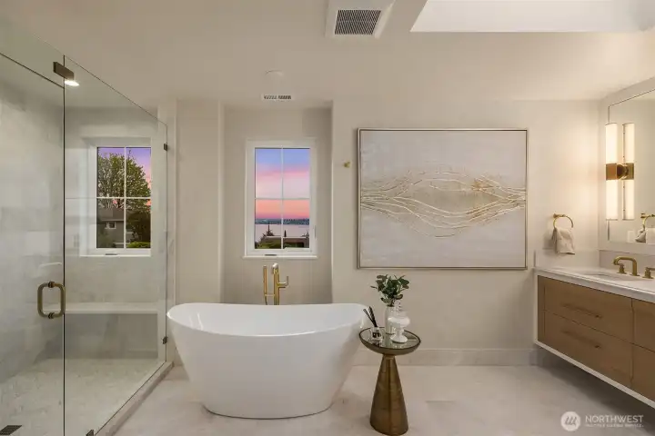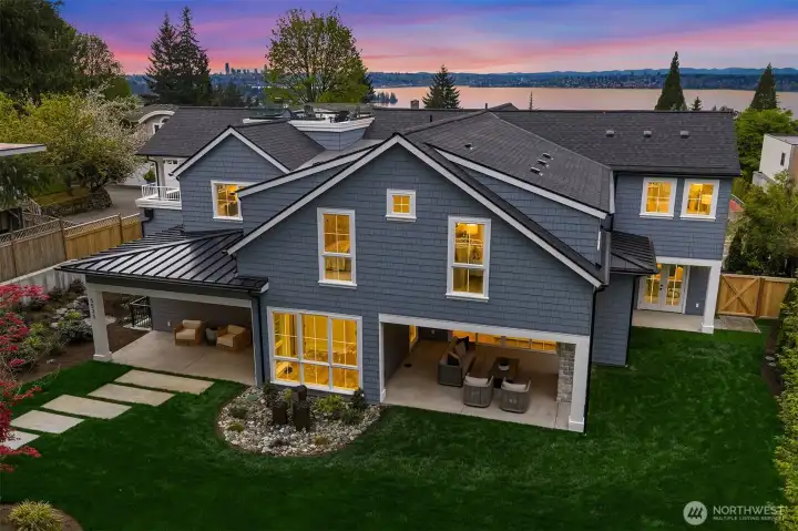 Gracefully positioned just above downtown Kirkland, this remarkable estate showcases the timeless elegance of Nantucket and Hamptons-inspired design, seamlessly blended with the finest in modern luxury. Tucked away in a private, secluded setting, the home feels like a true retreat—an escape where every detail has been thoughtfully curated. Inside, custom white oak wide-plank floors flow seamlessly beneath walls finished in rich Venetian plaster, while Amish hand-crafted cabinets bring warmth and authenticity to the heart of the home. Designed for both comfort and indulgence, every bedroom is fully soundproofed, as is the stunning theater room, creating a serene, immersive experience throughout. Step outside to over 1,000 square feet of outdoor living space, perfectly positioned to soak in the sweeping views, or unwind on the expansive rooftop deck as the sun sets over the water. This is more than a home—it’s a rare blend of coastal sophistication, privacy, and elevated living.