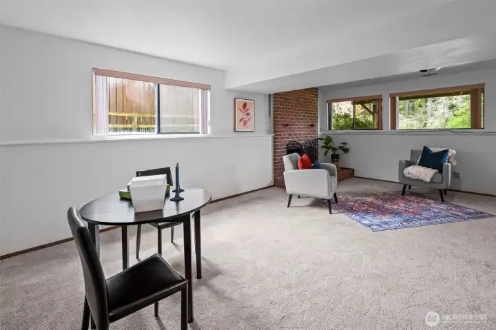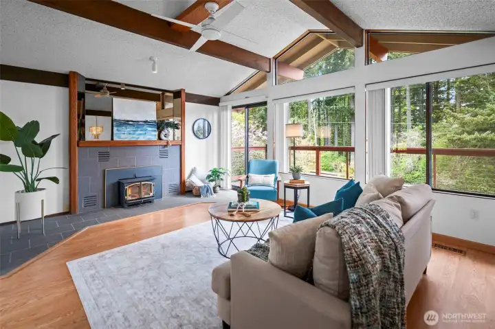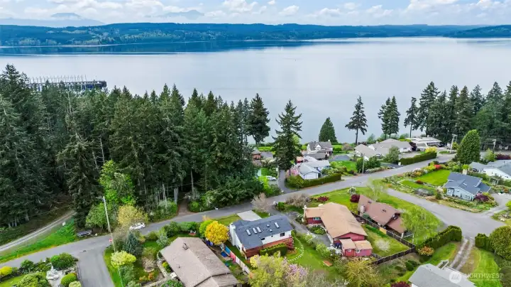 Wake up to peekaboo views of the Hood Canal and Olympic Mountain Range from this inviting 3-bedroom, 2.5-bath home. Vaulted ceilings and oversized windows fill the living room with natural light, while an wood-burning stove creates a warm, cozy feel. A slider opens to the front deck, perfect for enjoying partial water views and peaceful mornings. The family room offers an additional wood-burning fireplace for extra gathering space. Recent updates include a new roof, carpet, and water heater. Enjoy outdoor living year-round with a covered back deck overlooking the mature landscaped yard. Conveniently located with an easy commute to ferries, bases, and nearby amenities.