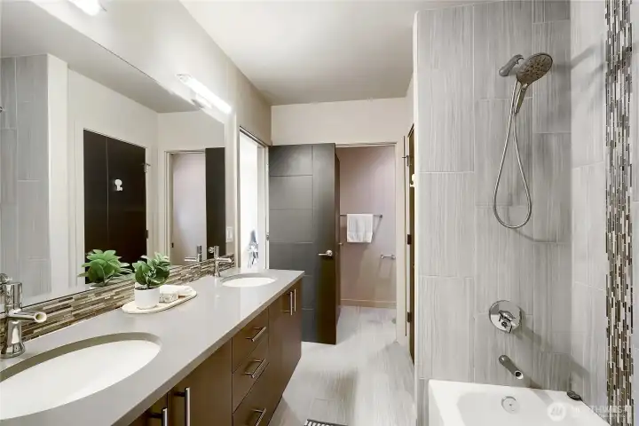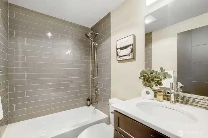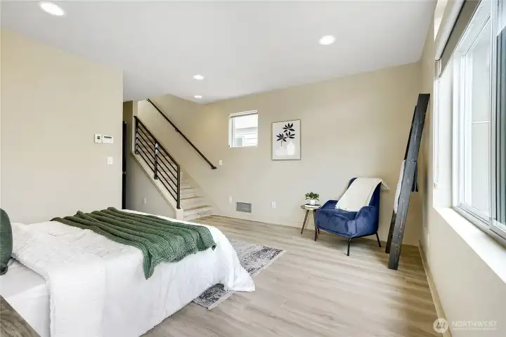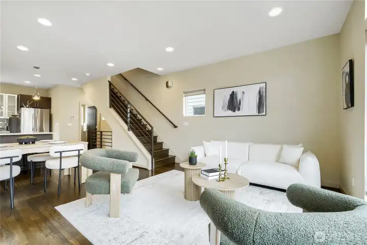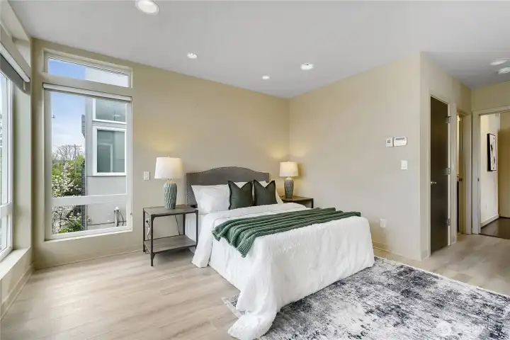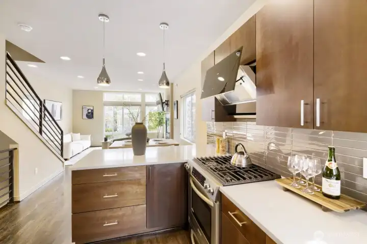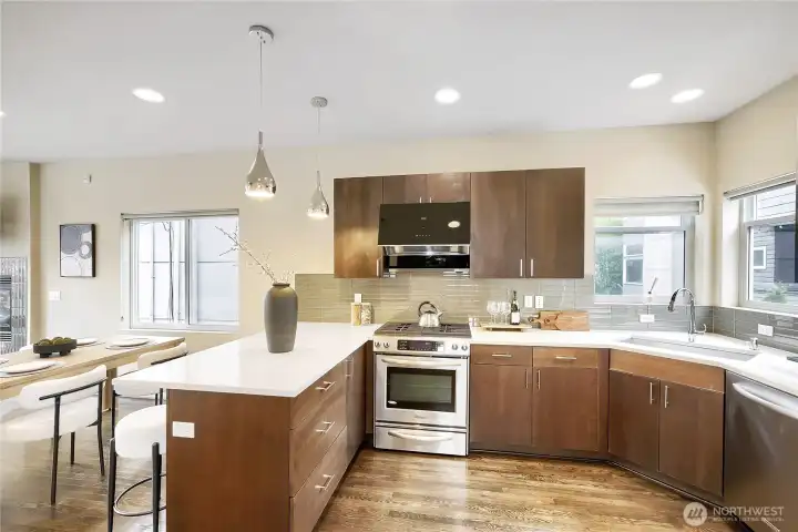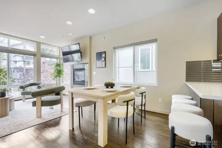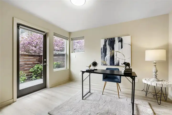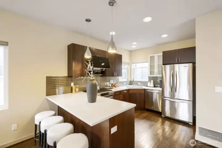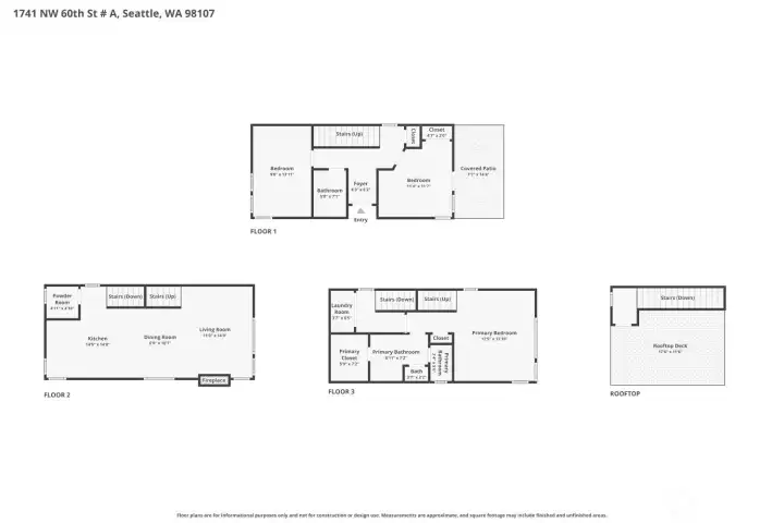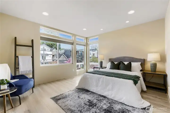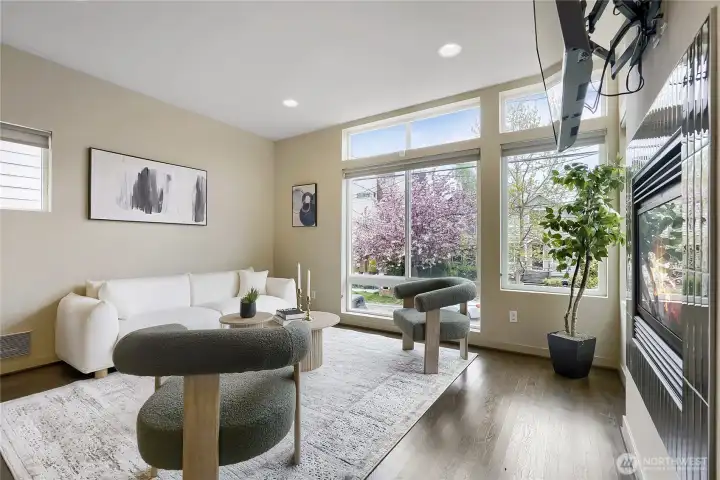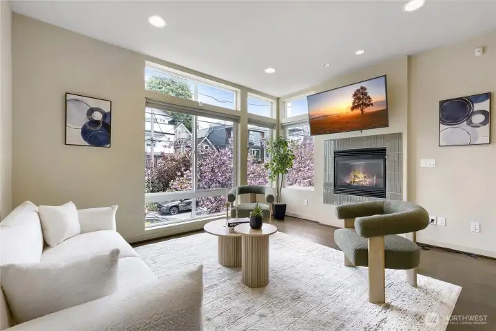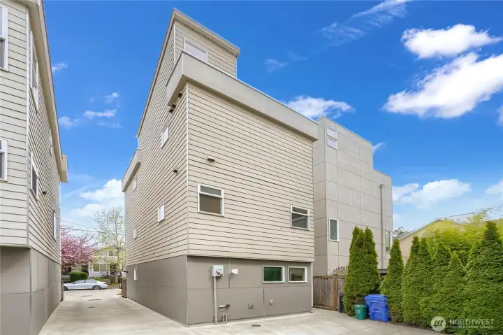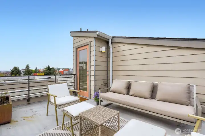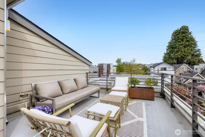 Rare Ballard Trifecta. This resale captures everything savvy buyers crave; detached living, private fenced garden, dedicated parking, and a rooftop deck - set in one of Seattle’s most accessible and bike-friendly pockets with a 96 walk-score. Step inside and feel the ease of home. The entry level offers two bedrooms and a full bath, paired with generous storage and seamless access to your own intimate courtyard. The main level lives beautifully, with an inviting great room anchored by a cozy gas fireplace, flowing effortlessly into a dining space, a chef-inspired kitchen with and quartz counters and a powder room for convenience. It’s a space designed for connection, comfort, and everyday living. Upstairs, the primary suite becomes your retreat with a walk-in closet, 5-piece bath, and convenient laundry. Just beyond, the rooftop deck delivers expansive territorial views and unforgettable sunsets, creating a private escape above it all. Solid surface flooring throughout and no HOA dues offers both freedom and function in a truly exceptional Ballard setting. Seller procured inspection available by request after showings.