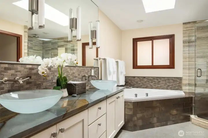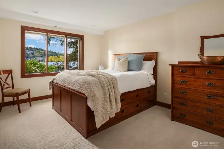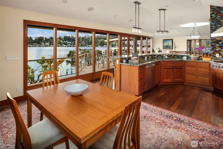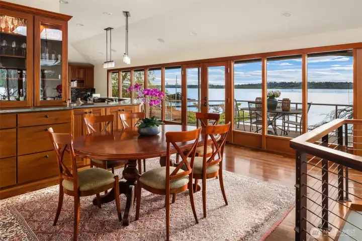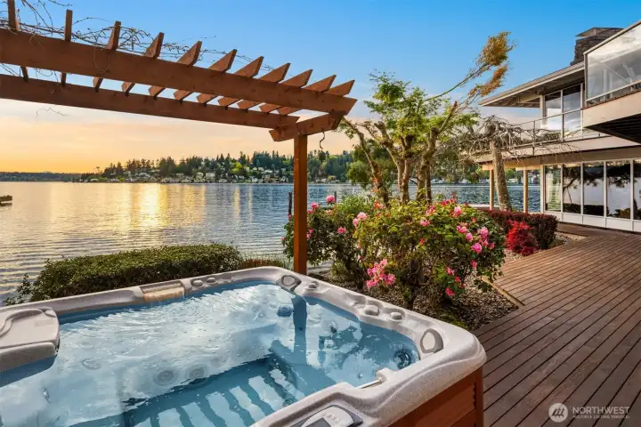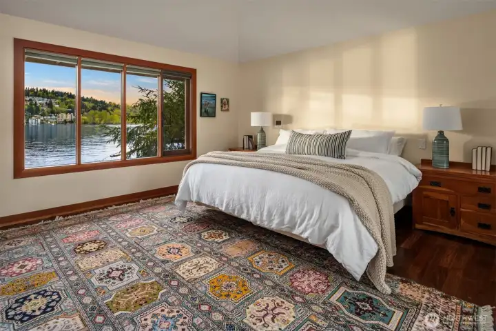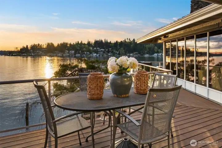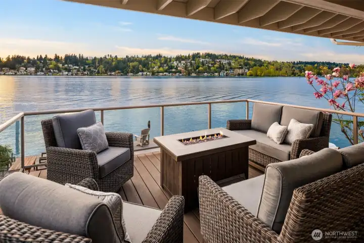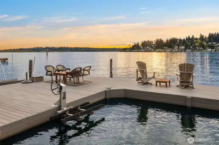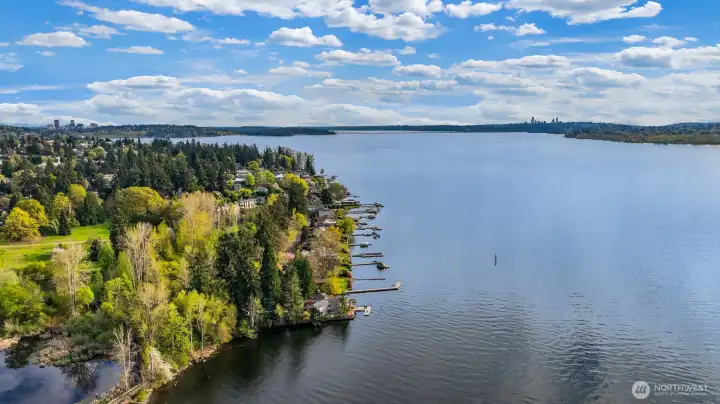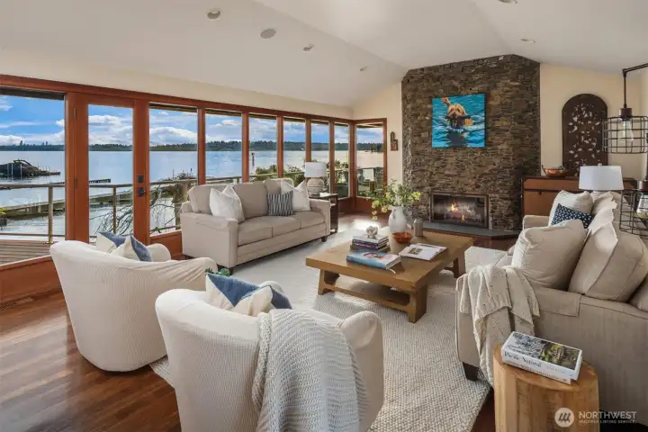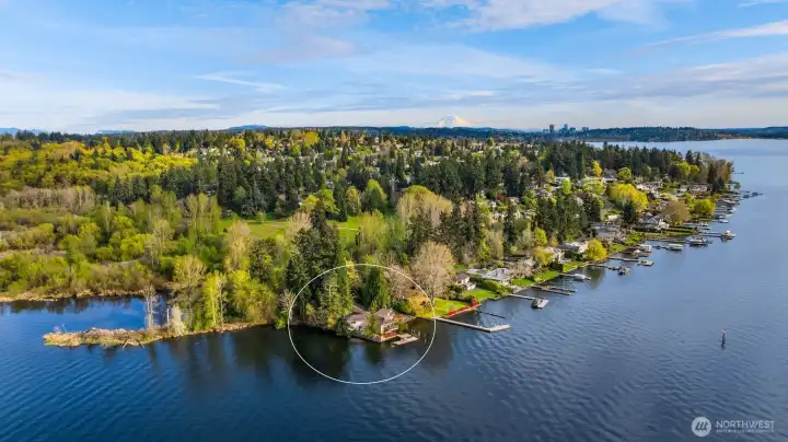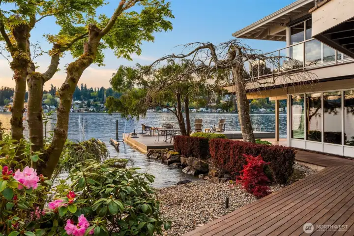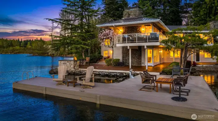 At the end of Rose Point Lane, this gated West of Market waterfront home is nestled in a private, arboretum-like, .82-acre setting. The views are extraordinary—a true panorama of lake and city views in a southwest orientation, filling the home with beautiful natural light and offering spectacular sunsets. 97 feet of waterfront, private dock, hot tub, putting green, and numerous decks and patios for gathering with friends and loved ones—this home was designed to embrace life on Lake Washington. Fully rebuilt in 2011, interiors feature floor-to-ceiling windows and an open floor plan with primary on the main for easy living. The lake level offers a rec room, office and secondary bedrooms. Ample parking for entertaining. All this in an incredible West of Market location close to fabulous shopping, dining and retail districts.