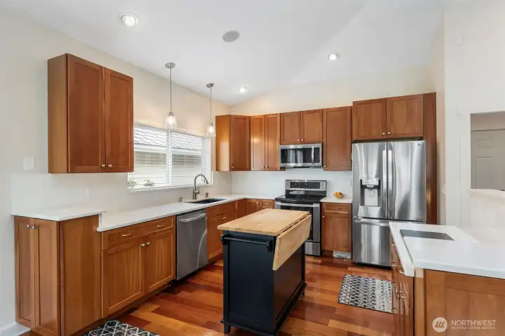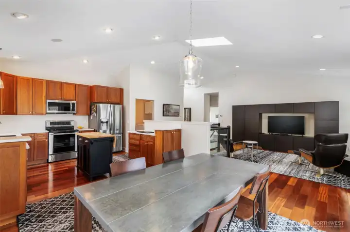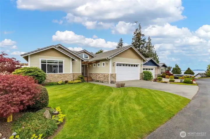 Experience elevated living in this beautiful home in the Villas by the Sea community featuring views of Port Hadlock Bay and Skunk Island and a flexible floor plan. The main level welcomes you with vaulted ceilings and rich Brazilian cherrywood floors, creating a warm yet sophisticated atmosphere. At the heart of the home is a thoughtfully updated chef’s kitchen, complete with cherry cabinetry, quartz countertops, and new appliances—perfect for both everyday living and entertaining. Natural light pours in, enhancing the home’s open feel and showcasing the surrounding scenery. The lower level offers incredible flexibility with its own bedroom, bathroom, and expansive bonus space—ideal for a home office, media room, or guest quarters. With its layout, this home is perfectly suited for multi-generational living or those seeking additional privacy and functionality. Enjoy peaceful, landscaped views that capture the beauty of the Pacific Northwest from both levels of the home. A rare opportunity to own a versatile and meticulously maintained home in Port Hadlock!