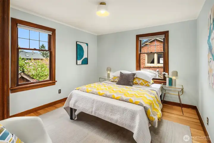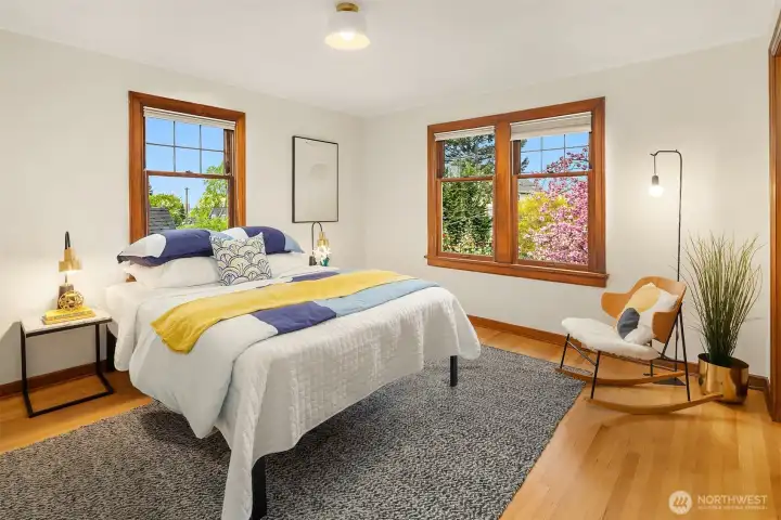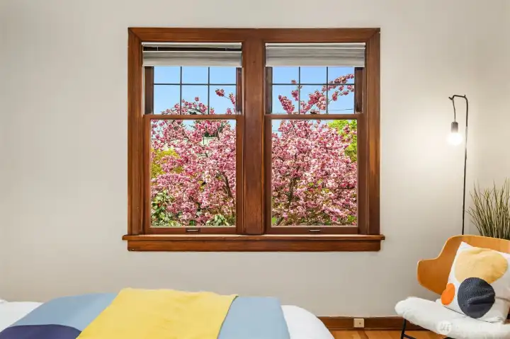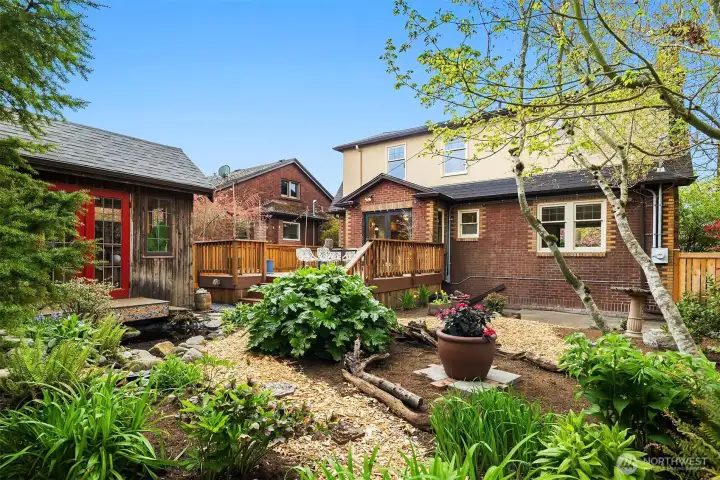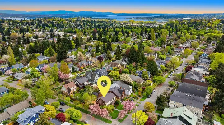 Behold Ravenna’s crown jewel—an exceptional gem w/ storybook curb appeal & a magnetic presence that draws you in. Inside, bright & beautifully curated, sun-drenched living & dining rooms—straight out of Elle Decor—set the tone w/ coved ceilings, rich mahogany millwork & beautifully refinished hardwoods. The sleek, designer kitchen features a sunny breakfast nook, while French doors open wide to an expansive entertaining deck & the magical gardens. Upstairs, three bright & serene bedrooms—including an expansive, sunlit primary—are framed by dreamy cherry blossom outlooks. The lower level offers flexible media, guest, or office space, along w/ laundry, generous storage & a perfect workshop. Updated w/ central AC & off-street parking for everyday ease. The grounds are the heart—the undeniable showstopper. Lush, layered & full of wow factor, w/ gardens, birdbaths & winding paths that create a true in-city sanctuary. Seamless indoor-outdoor living unfolds w/ ease, where days flow outside & evenings glow beneath string lights. A charming detached studio is the cherry on top! Set proudly on a sunny corner lot in one of Ravenna’s most coveted pockets, just moments to cafés, light rail & neighborhood favorites—lovingly treasured by only three families over the past 100 years! This is the one. Updated. Magical. Happy. A true WOW at every turn—w/ the best energy the moment you arrive.