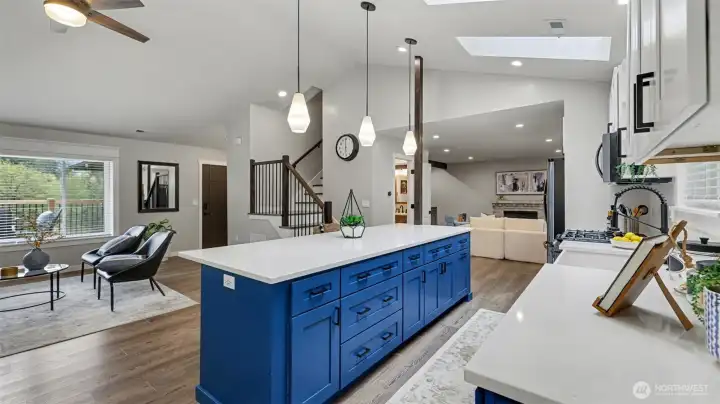 Open-concept living, dining and kitchen