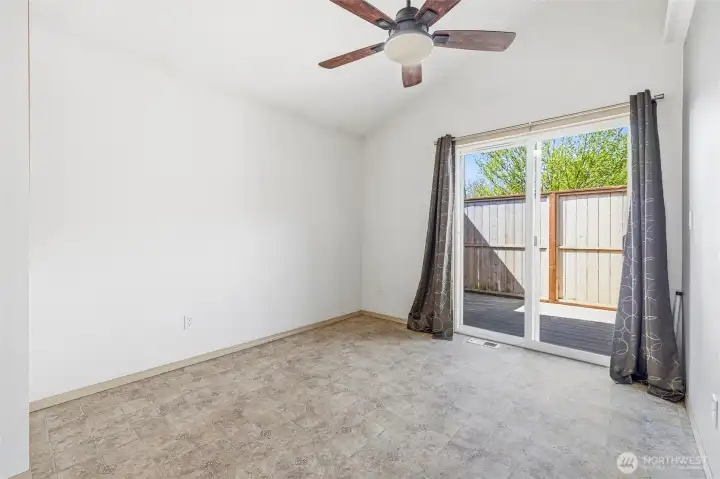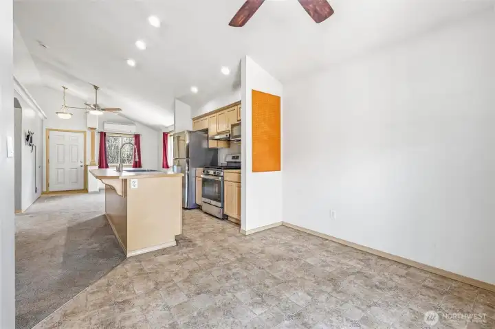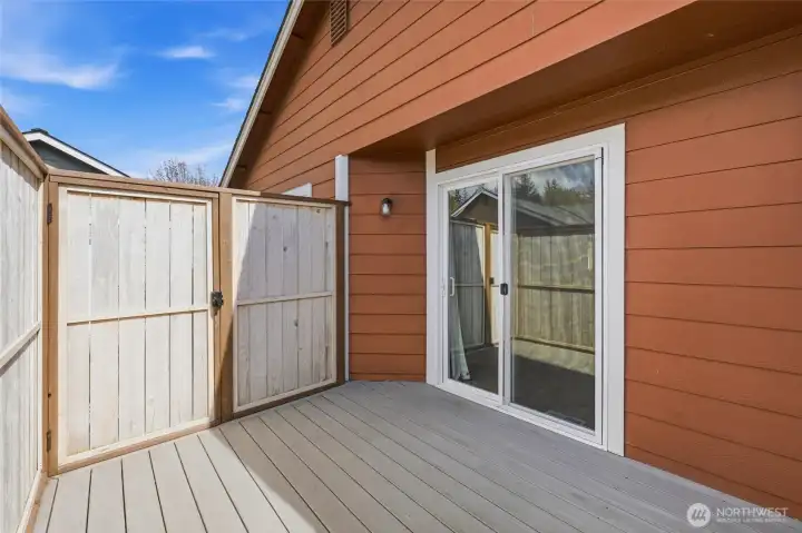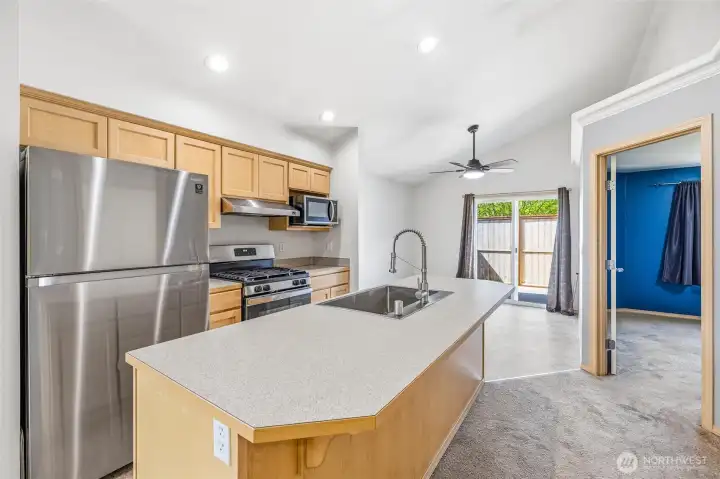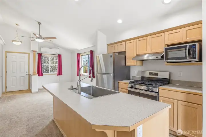 Welcome to Wildflower Way-your opportunity to own a charming, move-in-ready home! This well-maintained 876 sq. ft. residence offers 2 bedrooms and 1 bathroom, featuring numerous upgrades and a prime location near scenic walking trails and a brand-new city park. Step inside to an open floor plan that creates a bright, spacious feel throughout the home. The kitchen is thoughtfully updated with stainless-steel appliances, a large island, and an oversized stainless-steel farmhouse-style sink-perfect for cooking and entertaining. Through the sliding glass door, enjoy a composite deck with a privacy fence, ideal for relaxing or hosting guests. The primary bedroom connects directly to the bathroom, while the second bedroom is perfect for guests, a home office, or flex space. Additional upgrades include a newer hot water tank, ceiling fans, an extended front landing with low-rise stairs, and an efficient ductless heat pump system to keep you cool all summer long. The HOA takes care of landscaping, detached garage maintenance, and common areas giving you more time to enjoy your weekends and your new home. Pre-Inspected & ready to go!