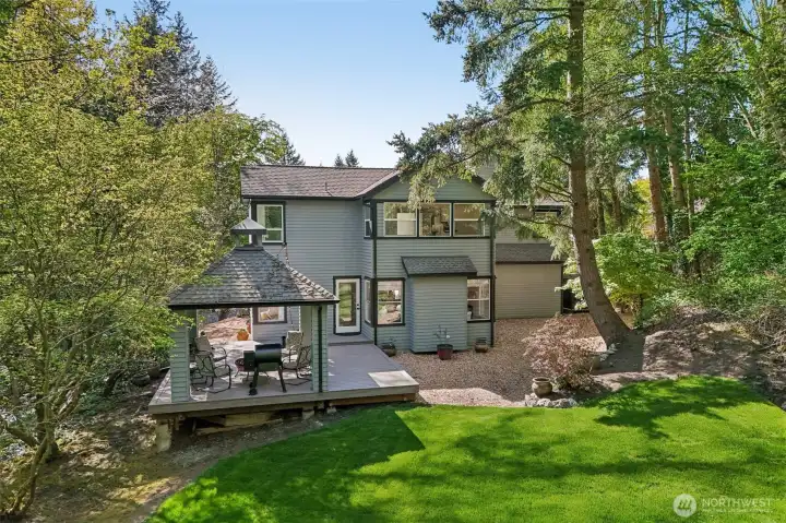 Welcome to this inviting and well loved 2,389 sq ft home nestled in a tranquil cul-de-sac in desirable Kenmore. This lovely home has been recently updated to feature an amazing kitchen with quartz counters, both a gas oven and electric oven (for the bakers), ample counter space and high end appliances. The main level features a living room, family room, kitchen and dining room with windows facing the private and lush back yard. The three bedrooms upstairs, include a newly remodeled primary suite, complete with large walk-in closet and 5 piece bathroom, including a large, tiled shower with dual shower heads. Move in ready with thoughtful upgrades and new carpet throughout the home. Enjoy quiet evenings under the gazebo, wired for a hot tub for future relaxation and entertaining. Bordering Saint Edwards park, this property offers immediate access to 326 scenic acres and public boat access on Lake Washington is less than 1 mile away. Conveniently located near parks, top-rated Northshore schools, shopping, dining, and major commuter routes, this home offers the best of suburban living with easy access to everything you need. Enjoy Pacific Northwest charm in Arrowhead, one of Kenmore’s most sought-after neighborhoods!