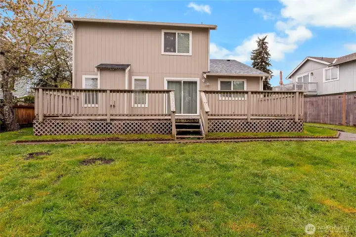 Turn-key and beautifully refreshed, this inviting home blends comfort and functionality in a highly convenient location. Fresh interior paint, brand-new carpet, and durable solid surface flooring on the main level create a crisp, modern feel throughout, making it truly move-in ready. The well-designed floor plan offers spacious living areas with flexibility to suit today’s lifestyle. The kitchen flows seamlessly to a large back deck overlooking a mostly fenced backyard. Upstairs features three generously sized bedrooms, including a private primary suite with a walk-in closet and en-suite bath. Complete with a two-car garage and easy access to shopping, schools, and major commuter routes, this home offers the perfect balance of comfort and convenience. Don’t miss your opportunity to see it today.