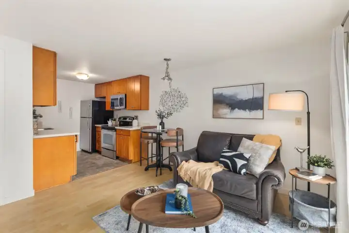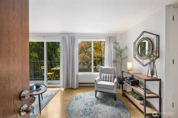 Bright and welcoming 2-bedroom home in a prime Seattle location with easy access to everyday essentials and commuting routes. This corner residence brings in abundant sunlight and offers a comfortable, open layout with a private outdoor space for relaxing or entertaining.Interior updates include brand new carpet, updated flooring, and a refreshed kitchen and bathroom with modern finishes throughout. Thoughtful design and clean lines make this home feel both functional and inviting.Additional perks include a designated covered parking space, secure entry, elevator access, and extra storage options. No rental cap provides flexibility for future use, whether as a primary residence or income-producing property.Close to parks, shopping, dining, and transit—this is an excellent opportunity to own in a well-connected neighborhood.