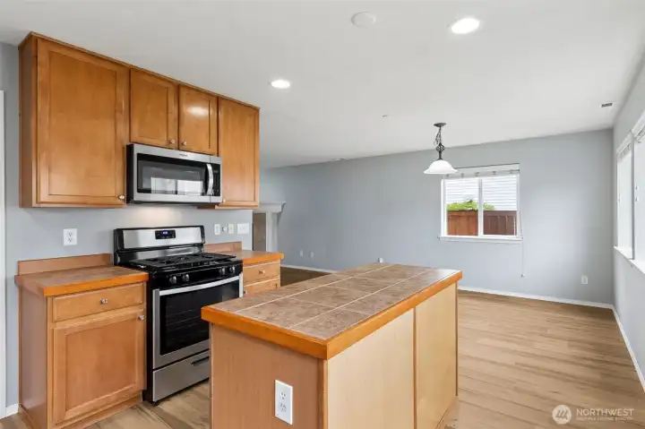 Functional kitchen layout with walk in pantry.