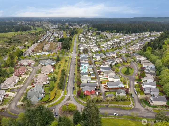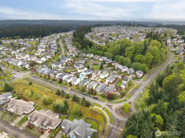 Sound view trail entrance is near the roundabout. Enjoy miles of trails, playgrounds and parks in DuPont!