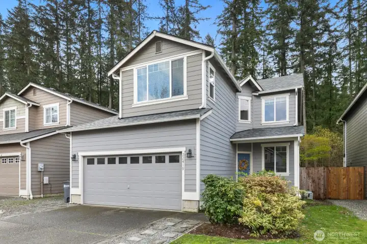Welcome to this beautifully updated 3-bedroom, 2.5-bath home offering 1,890 sqft of thoughtfully designed living space — fully fenced and backing to tranquil green space for the privacy and serenity you've been searching for. The heart of the home shines with a brand-new kitchen featuring new cabinets and countertops plus brand new LVP flooring. Major systems have been updated for worry-free ownership: brand new roof, new central A/C, new fixtures, and a 2022 water heater — nothing left to do but move in. Upstairs, retreat to the spacious primary suite featuring a private 5-piece en-suite bath and a generous walk-in closet. Two additional guest bedrooms and a full guest bath complete the upper level. The main floor is equally functional with a dedicated home office, a convenient half bath, gas fireplace and laundry room. The 2-car garage adds even more utility and storage space. Located in a prime spot close to Lake Wilderness Elementary School, Lake Wilderness Park, popular shopping, and easy freeway access — this home checks every box. Don't miss your chance to own a refreshed home in a location that truly has it all!