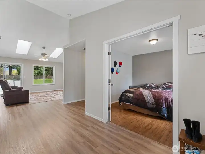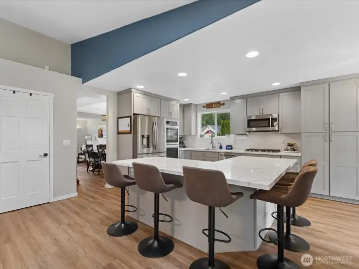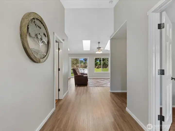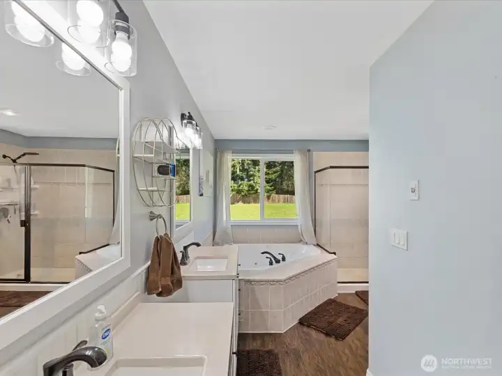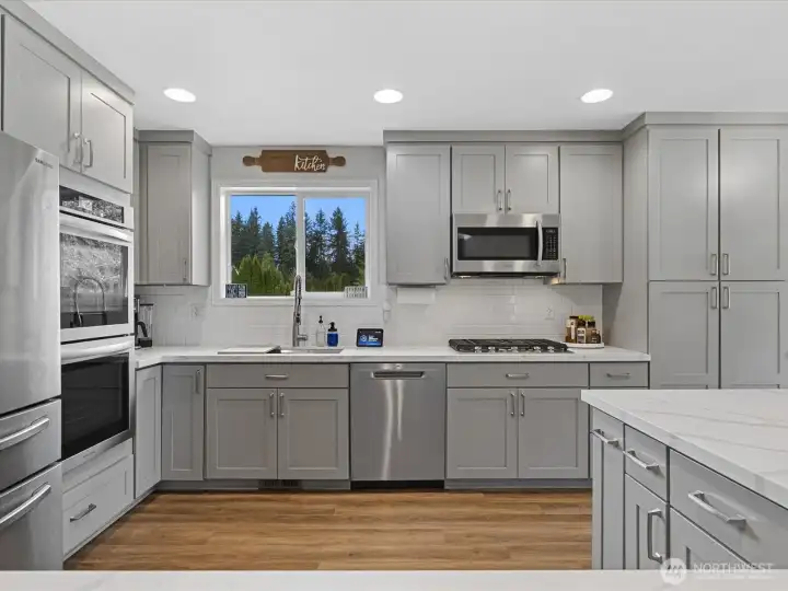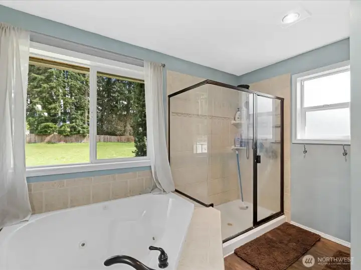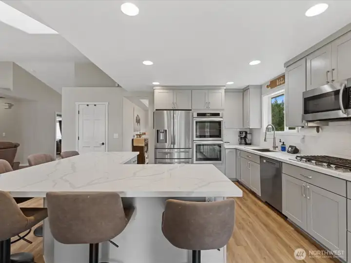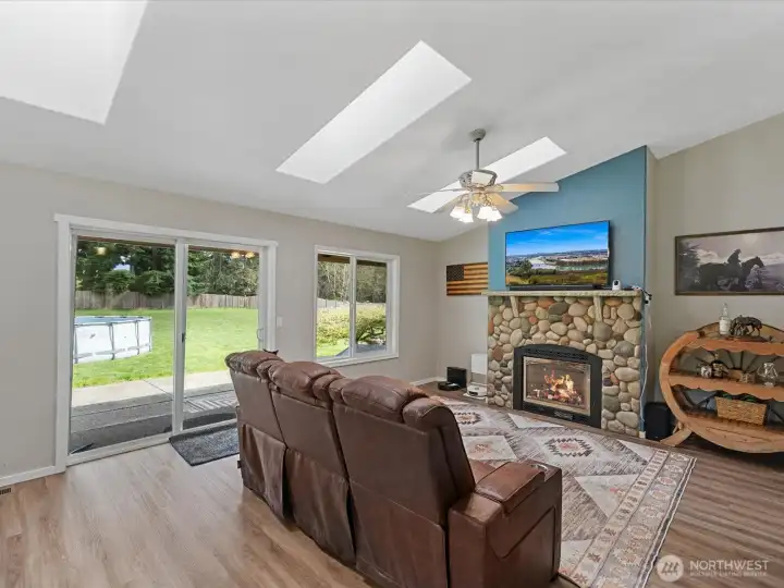 Welcome to your private one-acre sanctuary in Arlington! This meticulously maintained 2,296 sq. ft. rambler offers the perfect blend of luxury and comfort. The spacious 4-bedroom layout features a stunning primary suite with a cozy gas fireplace, jetted tub, and walk-in closet. Entertain with ease in this recently updated chef’s kitchen boasting double ovens, a wine fridge, cabinets, gas stove and sleek finishes. Enjoy soaring vaulted ceilings, skylights, and newer floors. Enjoy the outside to a fully fenced, massive and level backyard with a patio, garden space, and RV parking. Some other upgrades include central A/C and a tankless water heater. Nestled on a quiet dead-end street with a 3 car garage, this home is a rare find! Welcome home.
