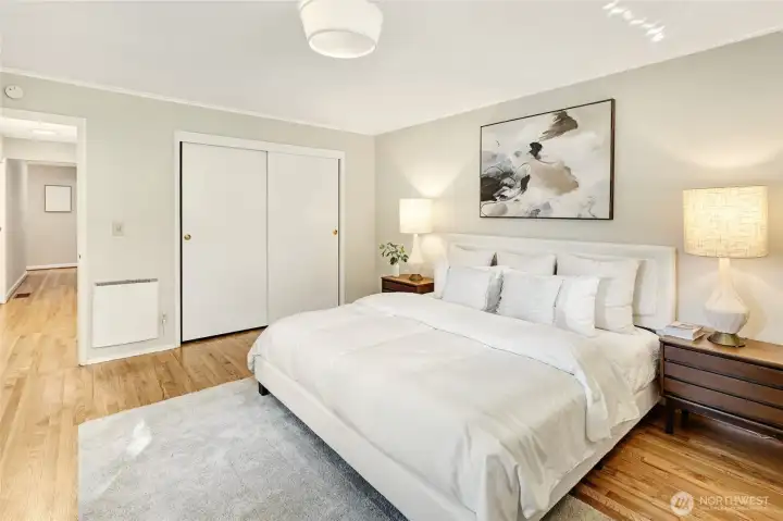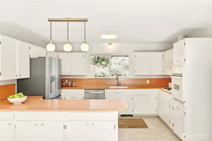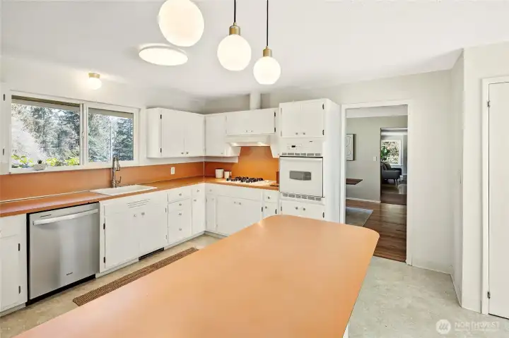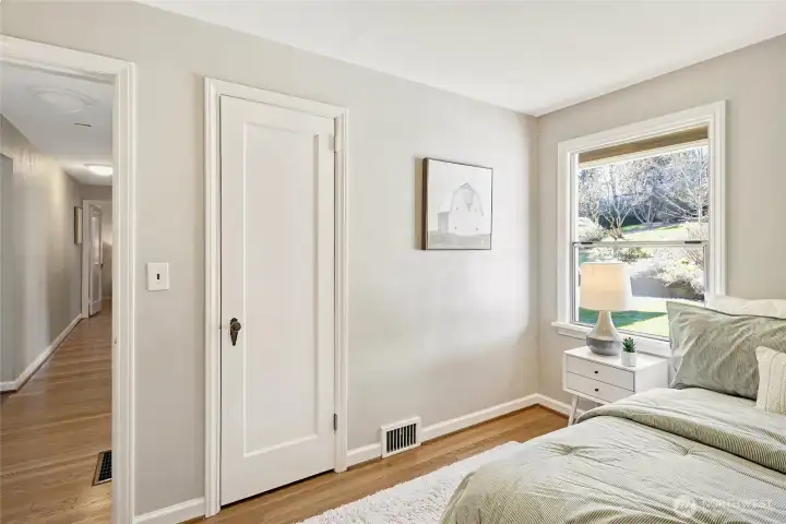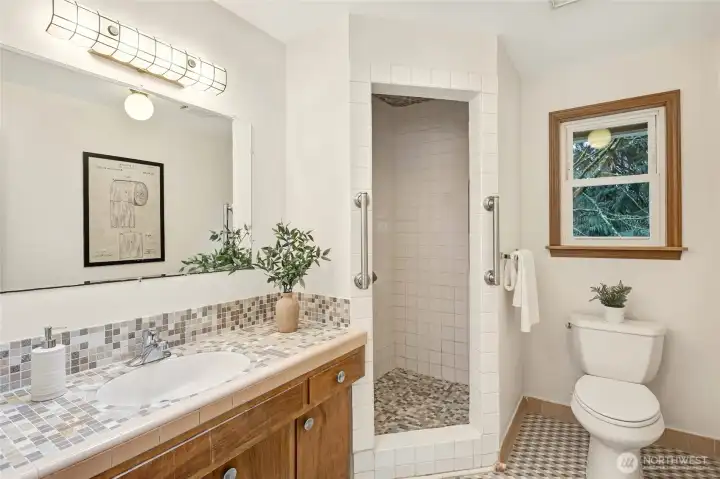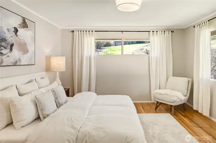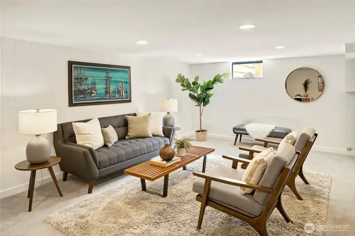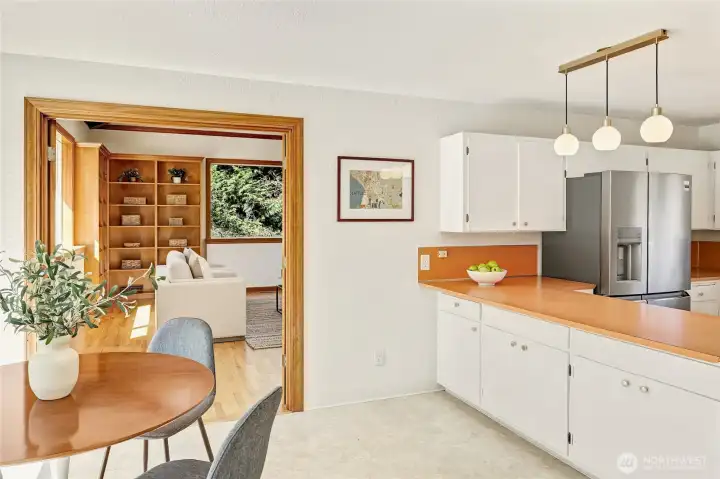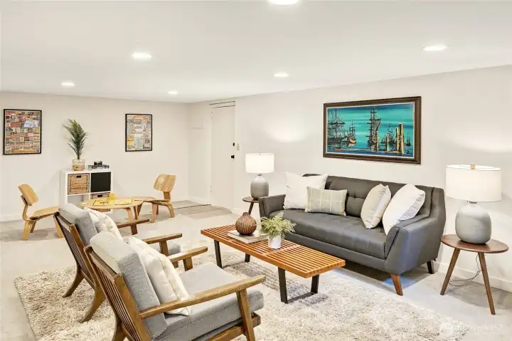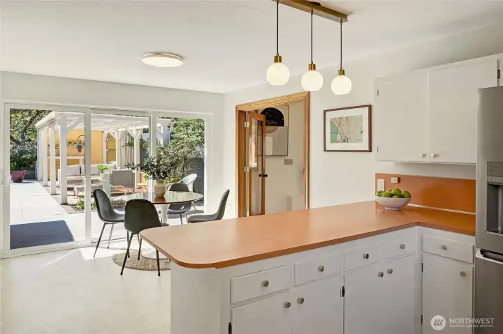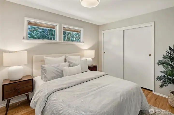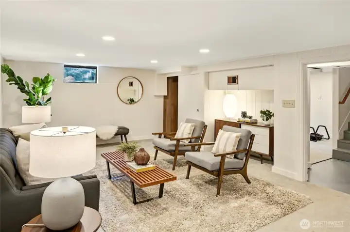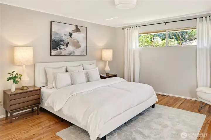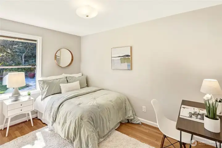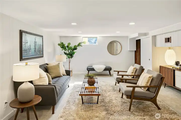 A hidden retreat in the heart of North City, this beautiful home brings together nature, light & thoughtful design in a setting that feels both grounded & restorative. Classic formal spaces feature oak hardwoods, wood stove, & period built-ins that reflect its timeless character, while the expansive studio-style great room serves as the heart of the home with vaulted ceilings, walls of windows, & serene garden views that keep the outdoors ever present. The light-filled kitchen opens seamlessly to expansive deck & covered patio, creating an easy flow between indoor and outdoor living that supports both everyday life & effortless entertaining. The private primary suite overlooks a peaceful courtyard & lush gardens, offering a quiet sense of retreat, complemented by three additional bedrooms, a lower-level rec room, & dedicated office that provides flexibility for work & guests. The grounds feel park-like yet intentionally maintained, with orchard, greenbelt backdrop, & layered landscaping that create privacy & a sense of calm throughout the seasons. Newer roof, sewer line, interior paint, waterproofing & more! Pre-inspected. A great commuter location with nearby light rail providing easy access to downtown, Lynnwood, Federal Way, & Redmond. Deeded access to Lake Forest Park Civic Club for private beach, clubhouse & boat launch! A rare combination of setting, space & nature, this home lives in quiet balance with its surroundings while staying closely connected to the city.