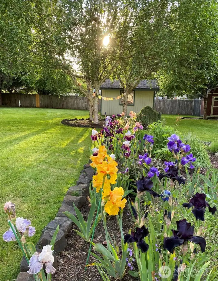 So many beautiful flowers in the back yard