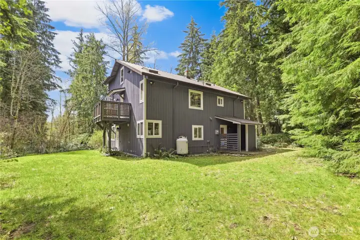 Tucked away on 2.6 serene acres, this custom tri-level retreat offers the freedom of country living with no HOA & room to truly spread out—animals welcome! Dream big - detached shop/1-car garage featuring a partially finished upper level—perfect future ADU for rental income or guest space. Bring the RV—full water + 30/50 amp hookups already in place (hello, extra income potential!). The grounds are peaceful & inviting, complete w/garden/tool shed & space to create your own mini homestead. A lifetime steel roof adds long-term value, while inside you’ll find warm engineered hardwoods, rustic open beams & an airy, inviting layout. The chef’s kitchen shines w/quartz counters, double oven, induction cooktop, walk-in pantry w/built-ins & flex desk/coffee bar + wifi applncs. Cozy up by the propane fireplace or enjoy efficient mini-split heating & cooling year-round. The spacious primary suite is a true escape—private Trex-style deck, spa-inspired bath w/custom tile shower & quartz finishes. Upstairs, a double bonus level offers endless options: office, media, playroom—design your lifestyle! Also on the second floor are two large bedrooms with awesome dormers, a main bath and utility room - W/D stay! Third floor features a double bonus room - great office, playroom, media room or hobby room! Tons of storage too in this one-of-a-kind home! All this just 12 minutes to downtown Monroe—live the peaceful country life without giving up convenience. Your acreage dream starts here.
