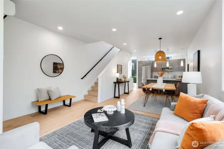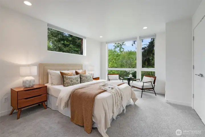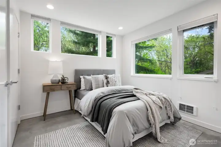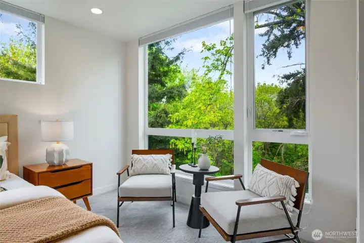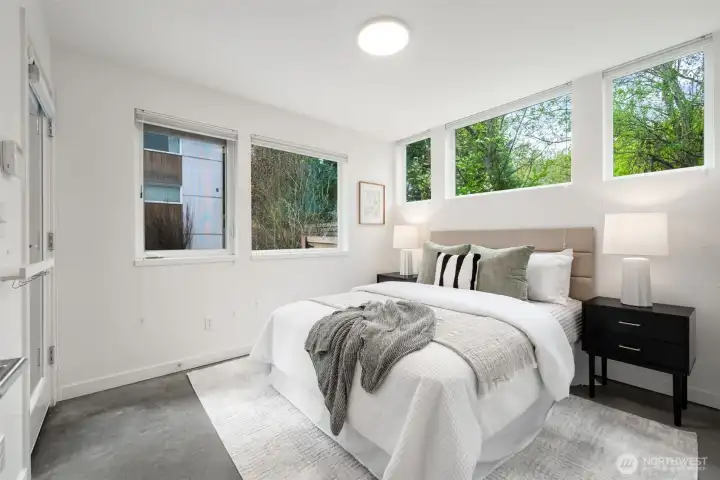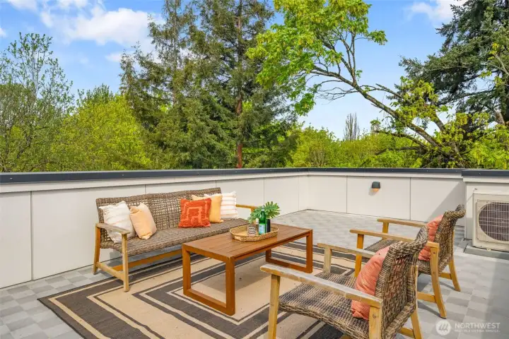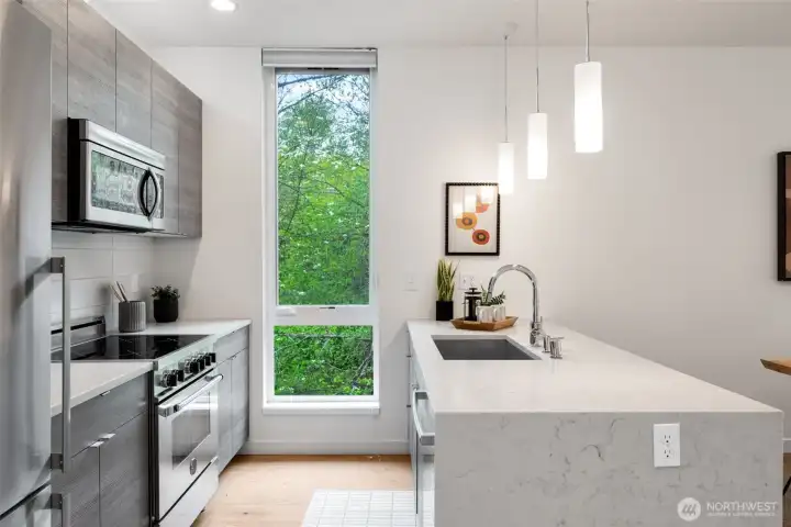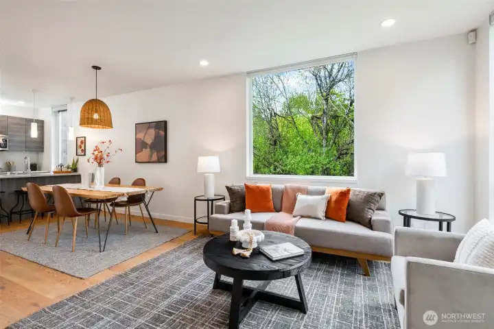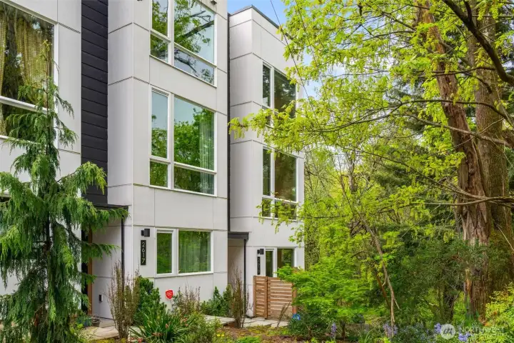 Imagine waking up to the sounds of nature while living in a modern townhome built in 2018. This nearly new end-unit townhome is tucked away along the surreal Longfellow Creek Greenspace, giving you a private retreat in Delridge that is still minutes from everything. The main level boasts an open-concept layout designed for entertaining, featuring a gourmet kitchen, room for a dining table, and a light-filled living room overlooking the greenspace. Retreat to the top floor, where you'll find a serene primary suite. The versatile lower level has two bedrooms, perfect for a home office, and provides direct access to your parking. Summer in Seattle is best spent on your private rooftop deck with sweeping views, kept cool by AC. Have a dog? A small fenced yard makes a perfect dog run. No HOA dues. Light Rail coming in 2032, you’ll be a quarter of a mile away!