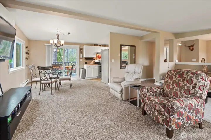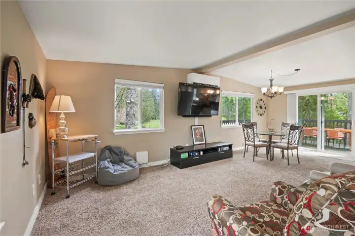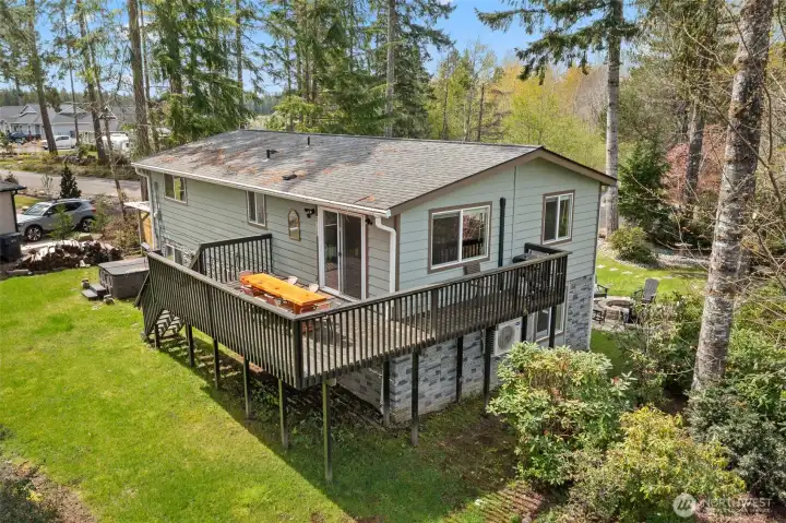 Positioned just off the 3rd tee box at Alderbrook Golf & Yacht Club, this updated home offers comfort, recreation, and a setting that’s hard to duplicate. Tucked at the end of a quiet cul-de-sac, the property enjoys a peaceful feel with scenic fairway views and front-row golf course positioning. Stone accents add curb appeal, while mini-split heating and cooling provide efficient year-round comfort. The light-filled main level features inviting living spaces, two spacious bedrooms, and a seamless connection to the expansive deck off the kitchen—perfect for outdoor dining, entertaining, or relaxing above the course. Downstairs offers exceptional flexibility with a large second living room, game room with pool table, half bath, utility area, and an additional room ideal for guests, office space, hobbies, or extra sleeping quarters. The oversized half bath offers room to add a shower for expanded functionality. Outside, enjoy warm summer evenings around the firepit, unwind in the hot tub, or take advantage of the generous yard space. A detached shed keeps tools and gear organized, while the attached garage plus covered carport provide excellent parking and storage. Alderbrook ownership includes access to an incredible lifestyle, including unlimited golf for two, plus nearby clubhouse amenities, trails, parks, and Hood Canal just minutes away. Whether you're seeking a full-time residence, weekend getaway, or golf retreat, this is one you won't want to miss!!