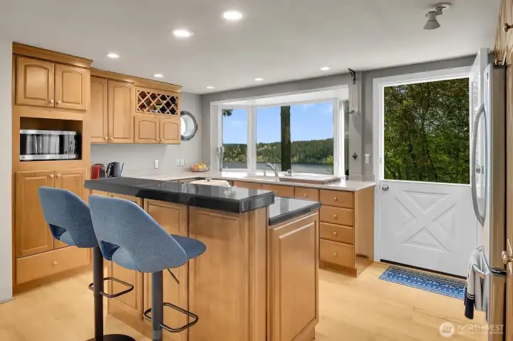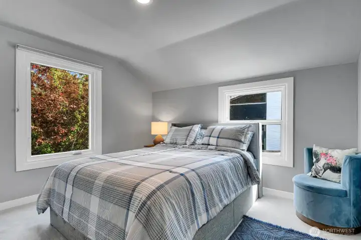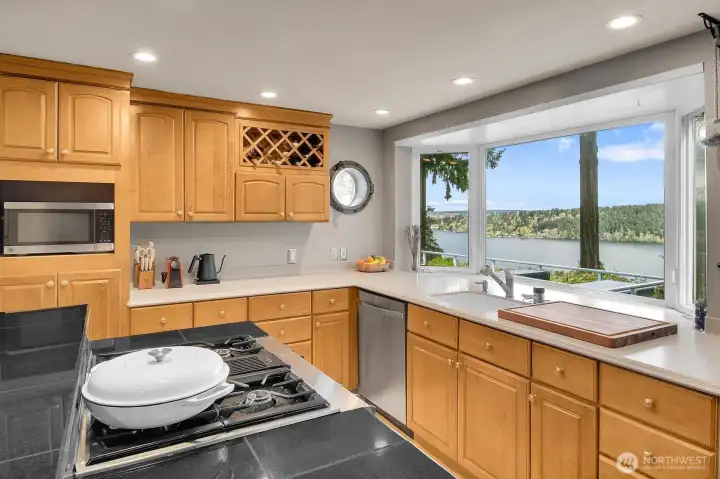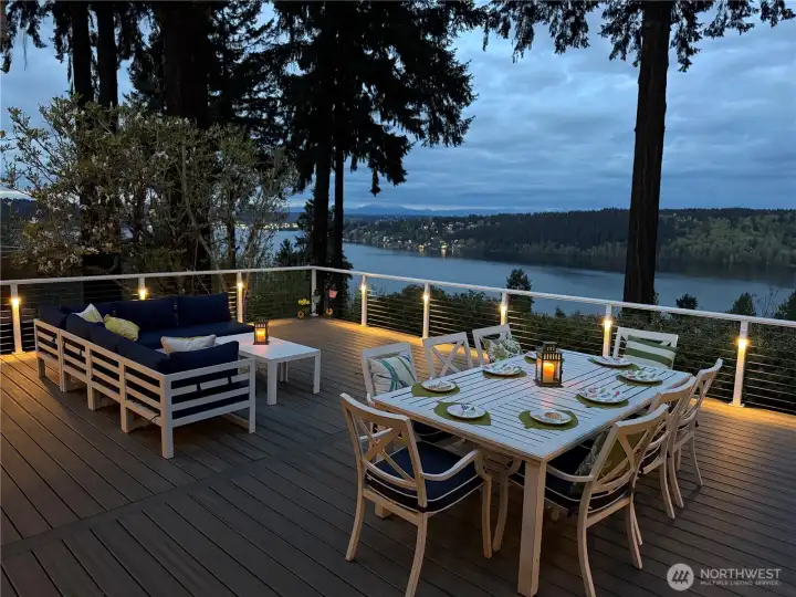 Perched on a quiet dead-end street in the heart of Cedar Park, this turnkey Cape Cod residence offers a combination of modern infrastructure and sweeping, unobstructed views of Lake Washington and Mount Baker. The interior has been modernized, featuring energy-efficient windows, new Trex front and rear decks, and a high-performance hot/cold heat pump system for year-round climate control. Practical investments include a brand-new roof, fresh interior and exterior paint. The open-concept living space transitions seamlessly to the expansive lakeside deck perfect for large scale entertaining or quiet morning coffee overlooking the water. A large bonus room provides flexible space for a home office, gym, or a 4th bedroom. Located just one block from Cedar Park Elementary, the property offers immediate access to the Burke-Gilman Trail via adjacent neighborhood steps. This meticulously renovated home is fully optimized for a sophisticated and tranquil lakeside lifestyle.