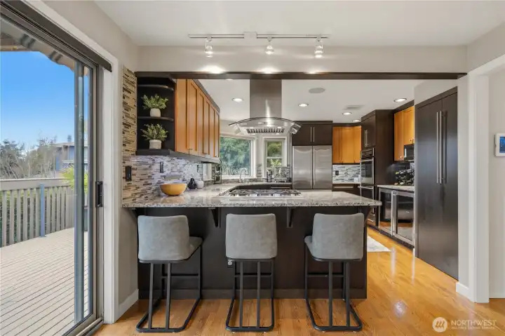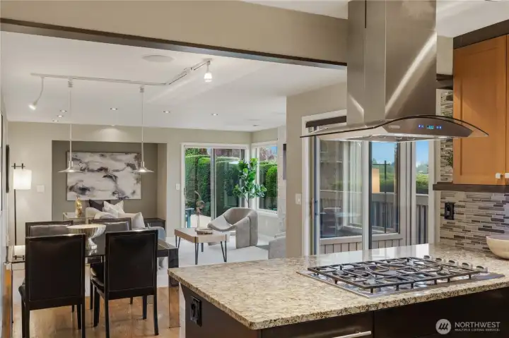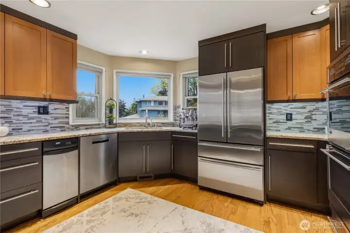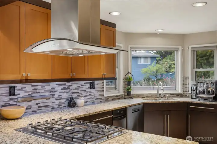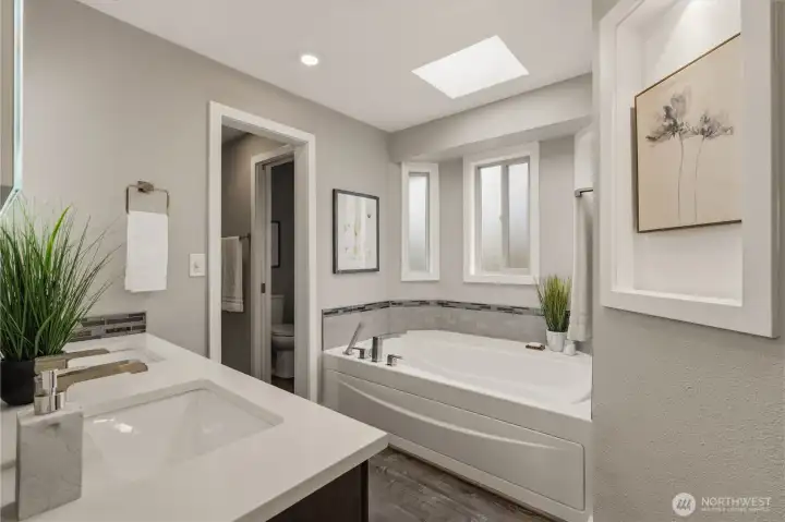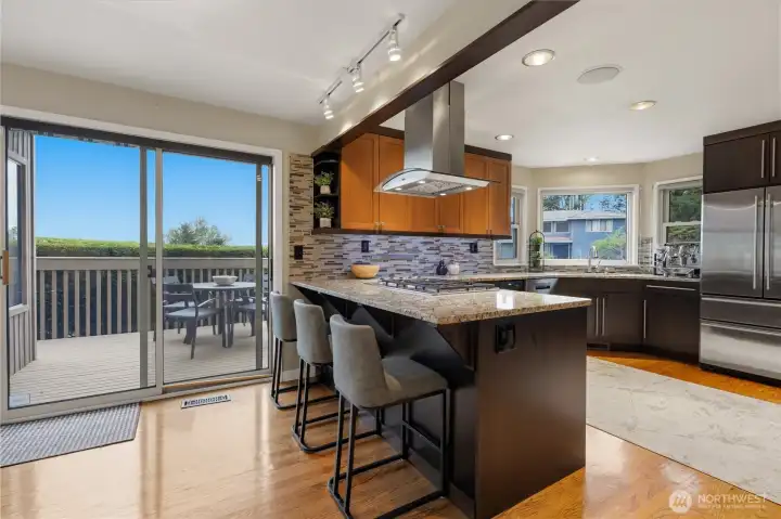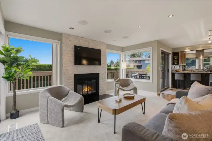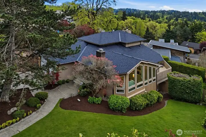 Set on a prime corner lot in Somerset, this beautifully updated 4 bedroom, 3.25 bath home offers 3,517 SF of refined living space, paired with top-rated Bellevue schools and sweeping territorial views. Step inside to a grand entryway with vaulted ceilings and expansive windows that flood the home with natural light. The main level features a tastefully updated kitchen with a 5-burner gas range, granite countertops, wine and beverage cooler, and seamless flow into the living room—an ideal setup for everyday living and entertaining. Two spacious bedrooms connected by a Jack-and-Jill bathroom, along with a powder room, provide flexibility and convenience on the main floor. Upstairs, the primary suite is a true retreat, showcasing expansive views, a private balcony, dual walk-in closets, a cozy fireplace, and an updated bathroom with a spa-like jetted tub. The lower level is designed for versatility, featuring a home office, an additional bedroom and bathroom, a flexible bonus space, and a fully equipped professional home theater. Thoughtful updates enhance the home’s comfort and efficiency, including a new roof, new windows, central A/C, along with multi-zoned smart-controlled lighting and integrated audio/video entertainment. Enjoy the outdoors in the fully fenced, level backyard that is private, serene, and perfectly positioned to capture beautiful views and stunning sunsets. Ideally located, just minutes to DT Bellevue, Factoria, freeway access, shops and restaurants.