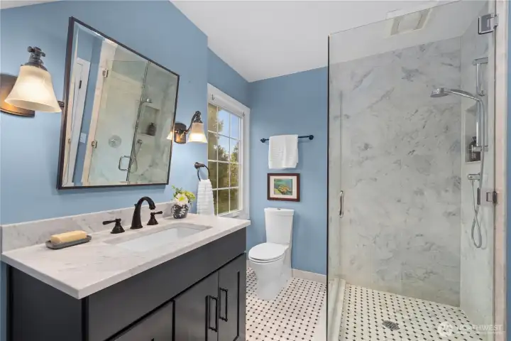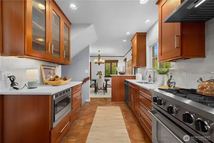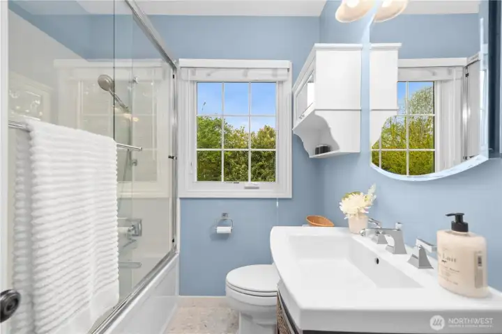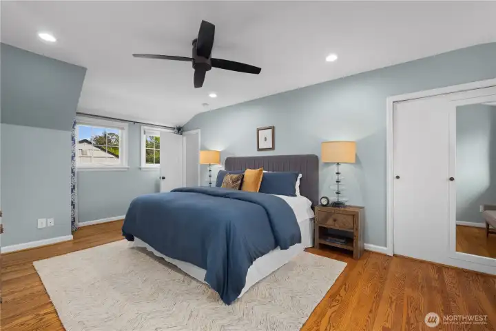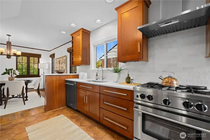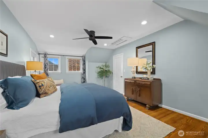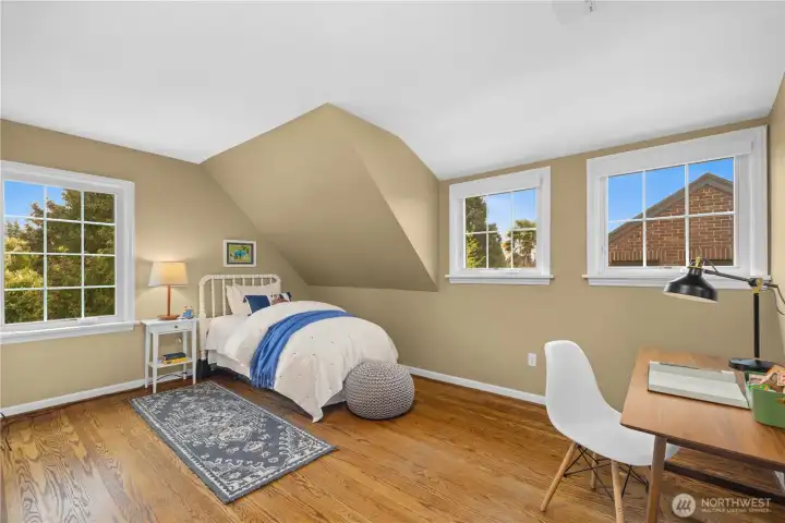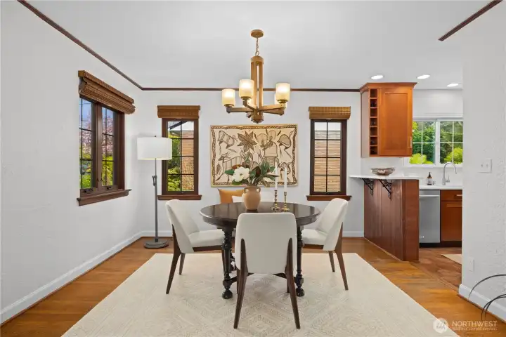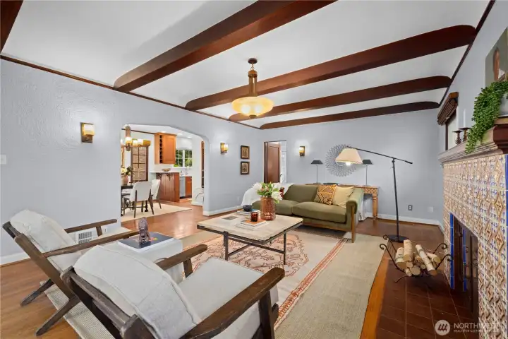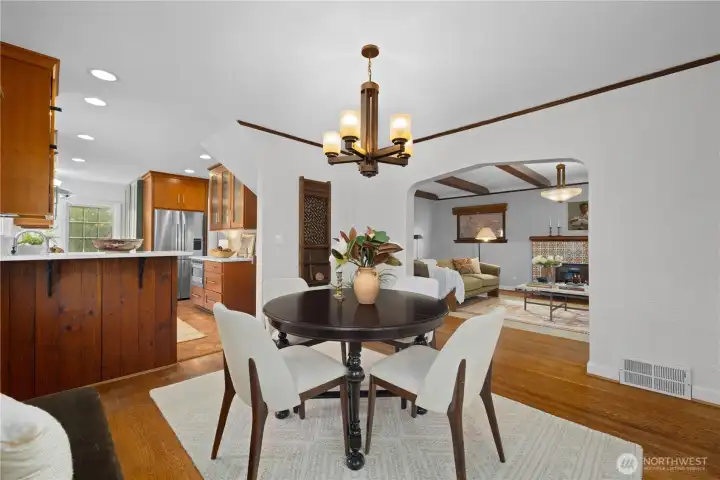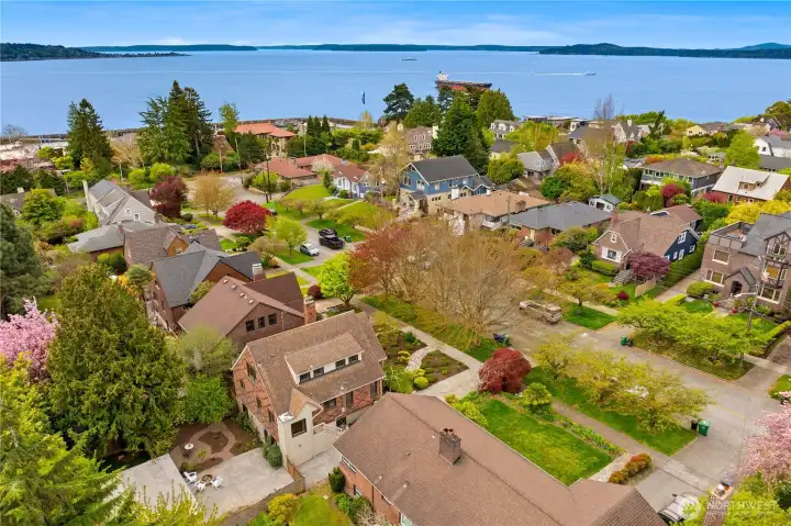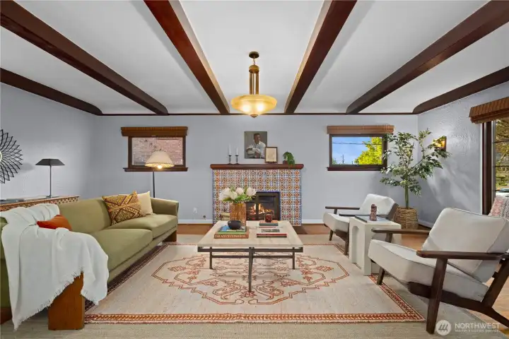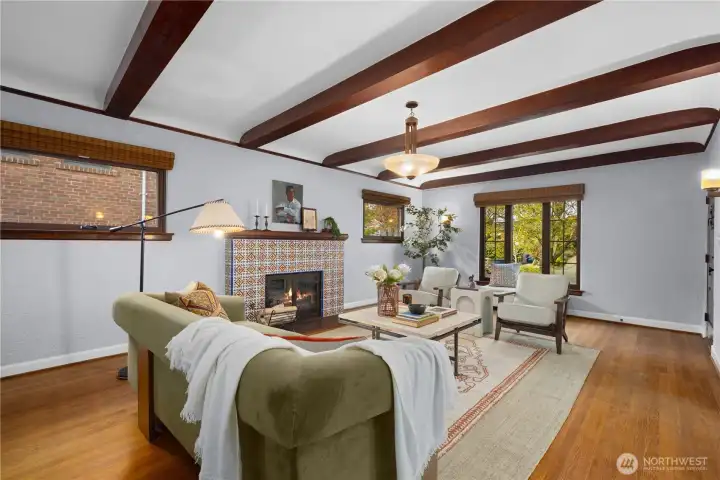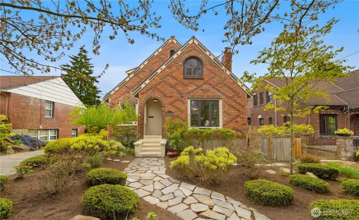 Storybook charm meets modern comfort in this preserved 1930 brick Tudor in the heart of Magnolia. This 4 bed, 2.25 bath home offers 2,590 SF across three levels with original oak hardwoods, coved living room ceilings with wood beams, and timeless Tudor architecture. The main floor offers a large living room, spacious dining, updated kitchen, full bath, and flexible bedroom. Upstairs, the primary bedroom features two closets, plus an additional bedroom and spa-inspired bathroom. The walk-out lower level adds a large family room, generous bedroom, half bath, and roomy laundry/mudroom. Thoughtfully modernized with new windows, updated electrical and plumbing, modern HVAC with AC, tankless water heater, and EV-ready charging. A large patio with fire pit invites entertaining, framed by mature landscaping and low maintenance turf. Two covered parking spots. Easy access to downtown Seattle, Magnolia Village, Discovery Park, and the Magnolia Farmers Market.