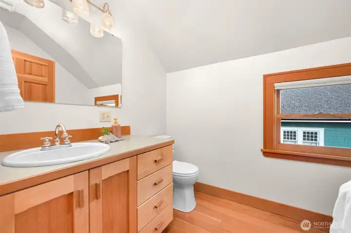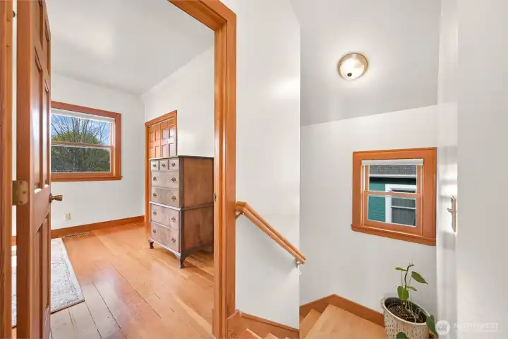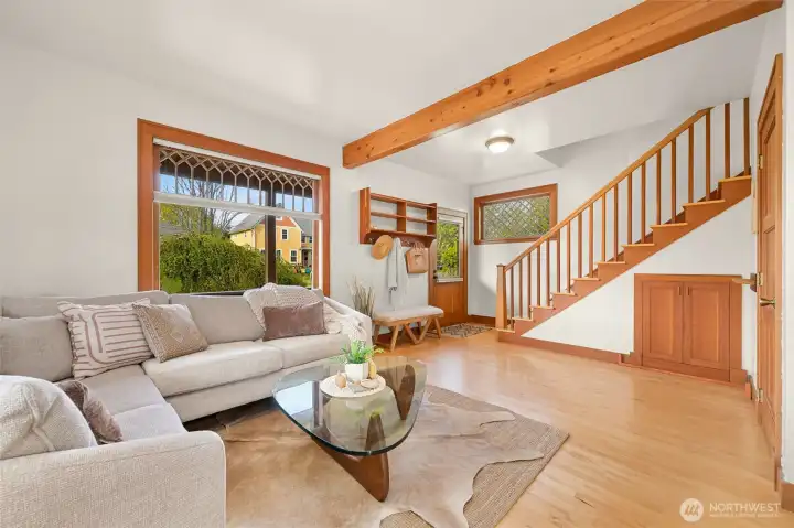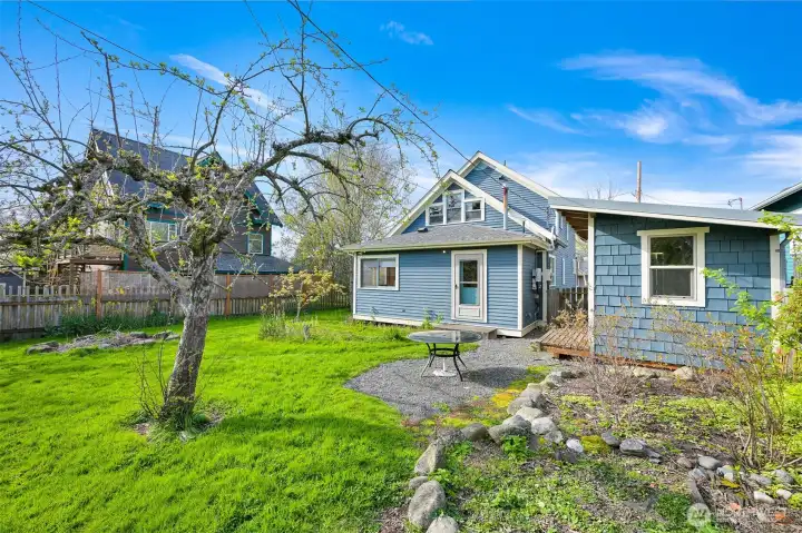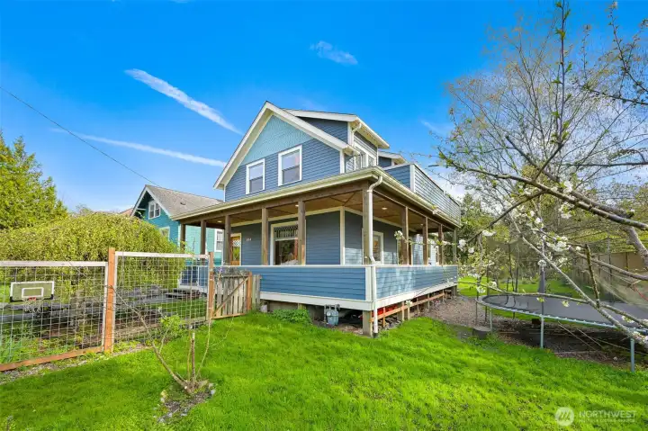 This beautifully updated turn-of-the-century home, originally built in 1900, seamlessly marries timeless charm with modern conveniences. Stunning hardwood floors and custom cabinetry weave throughout, celebrating its rich history, while energy-efficient upgrades—including solar panels and updated insulation—add a forward-thinking touch. Upstairs, the bedrooms feature valuted ceilings and delightful built-ins, and the bathroom enchants with a classic clawfoot soaking tub. Outside the upper deck, you can bask in the sun, while the open-concept main floor invites gatherings with its cozy breakfast nook and warm ambiance. Original ornate windows make a statement, and the wraparound covered porch, with its wood-accented soffits, beckons you to sit back and savor the moment.The outdoor space is just as impressive, with a matching outbuilding for storage and a lush edible garden brimming with fruit trees, raspberry bushes, and more—a personal farm-to-table experience. And the location? Absolutely unbeatable. You’re mere steps from Fairhaven, Marine Park, highly-rated schools, and a network of scenic trails perfect for biking or running.