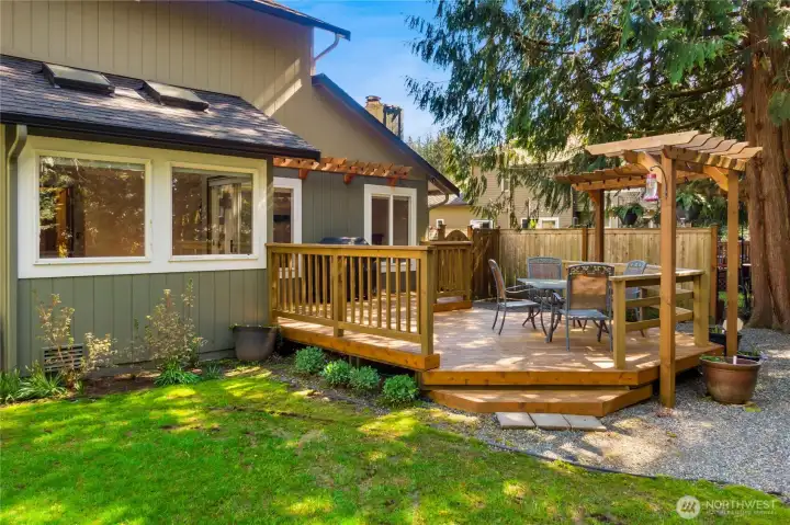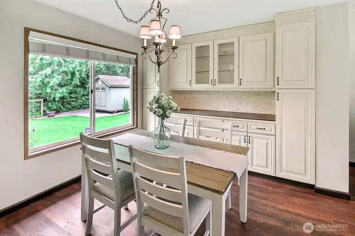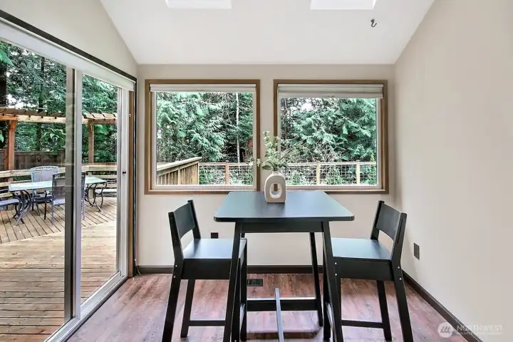 Eating nook looks out onto private, woodsy backyard and greenbelt