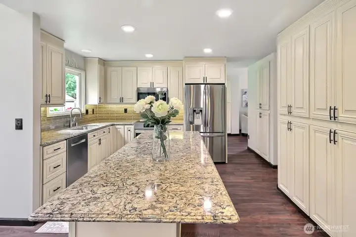 Island kitchen with custom cabinetry