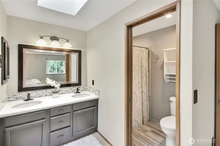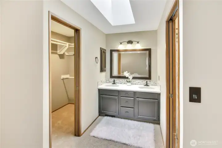 Primary suite with walk-in closet and 2 sink vanity