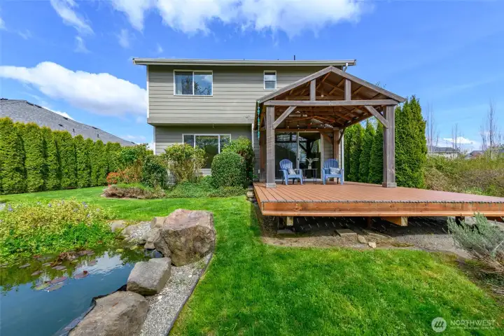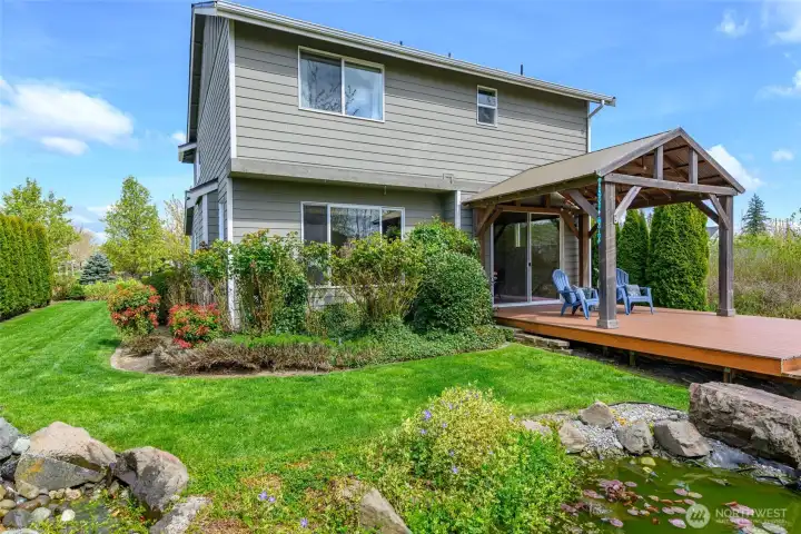 Beautiful 3 bedroom, 2.25 bath home in the desirable Highland Greens community set on a private lot next to a greenbelt! This almost 1,900 sf light and bright home features an open concept floor plan. Enjoy meal prep in the spacious kitchen with granite counters, tile backsplash, island with eating bar & walk-in pantry. Relax in the generous sized living room with cozy gas fireplace. Step outside to the huge covered back deck perfect for extending outdoor entertaining! Upstairs offers a bonus room that provides space for an office, den, play area or game room. Huge primary bedroom boasts vaulted ceilings, spacious walk-in closet & ensuite primary bath with dual sink vanities and large shower. The gorgeous private backyard with lush greenery, rose garden and koi pond with tranquil waterfall feature set this home apart from all others in the neighborhood! Centrally located and just minutes to the YMCA, shopping, schools & restaurants. This turn-key home is a true gem! Don't miss seeing it!!!