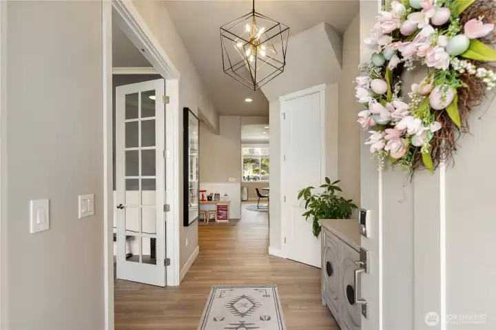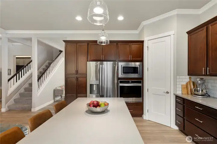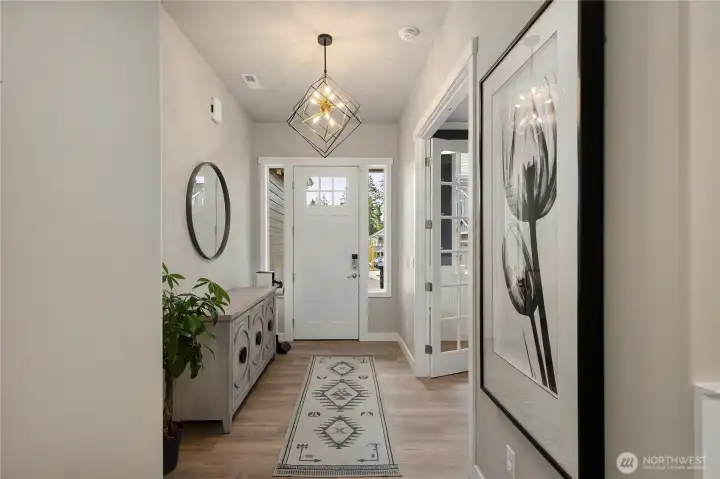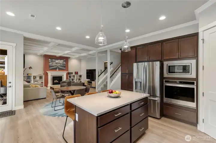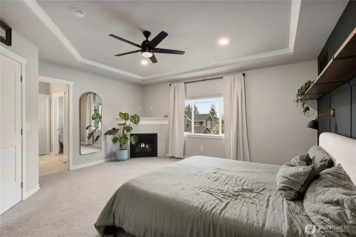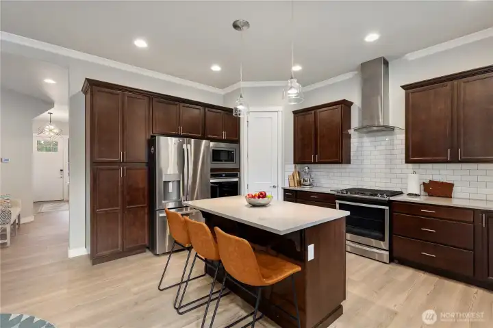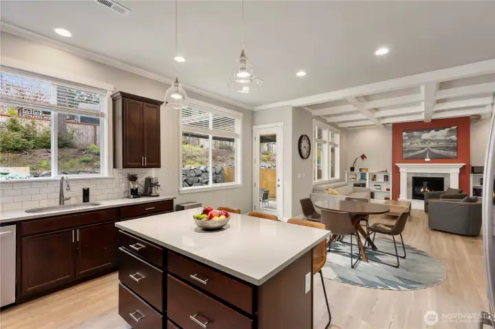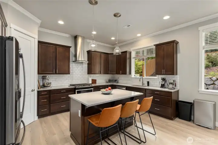 Come see this well maintained 4 Bedroom 2,816 sq ft home. Conveniently located just minutes from Silverdale shopping, dining, and everyday amenities. The main level features 10-ft ceilings, a dedicated office, a great room with custom built-ins, and a cozy gas fireplace. The fully fenced backyard features a large covered patio and terraced garden area. Kitchen includes a quartz center island, stainless appliances and pantry. Upstairs, the primary suite includes a gas fireplace, soaking tub, separate shower, and walk-in closet. The three additional bedrooms each have their own walk-in closets. A second full bathroom upstairs and loft provide added flexibility. Recent updates include added heat pump in 2022, LVP flooring installed in 2025, fully paid-off solar, and a Level 2 EV charger. Easy access to local bases and commuting routes.