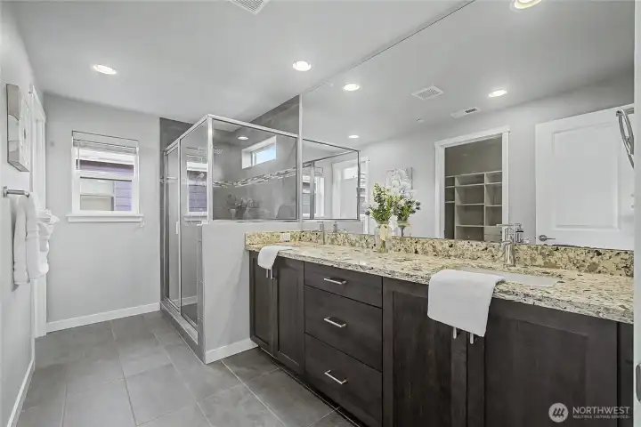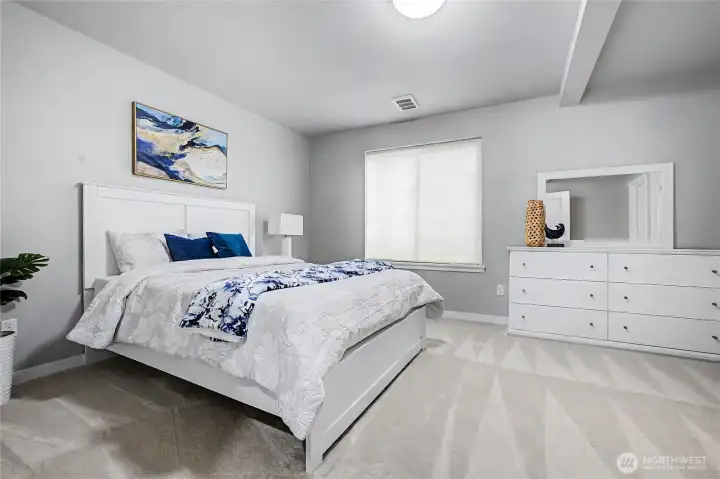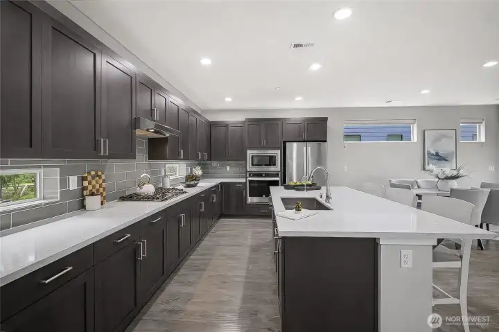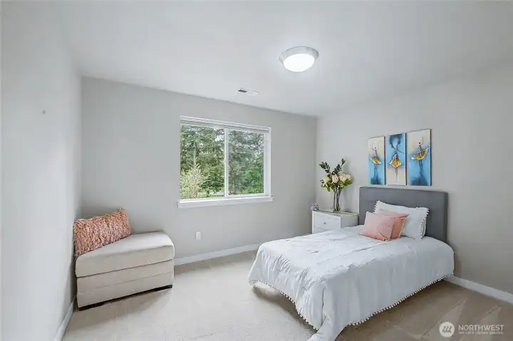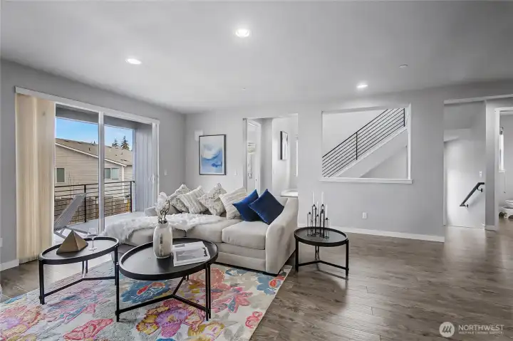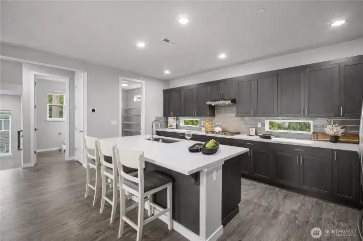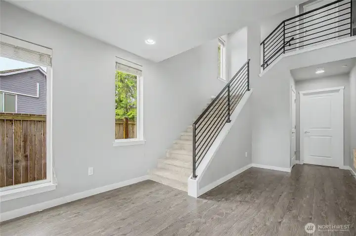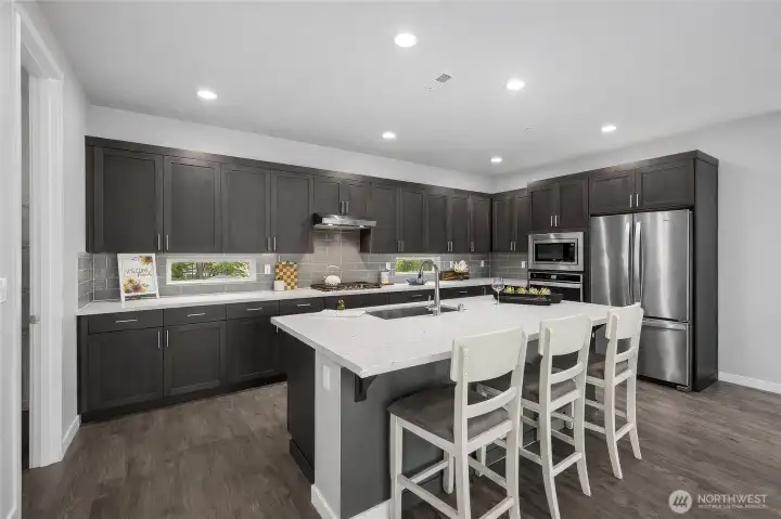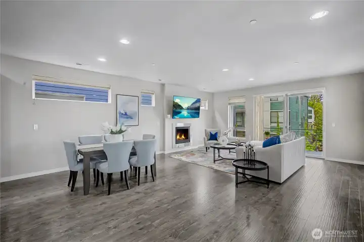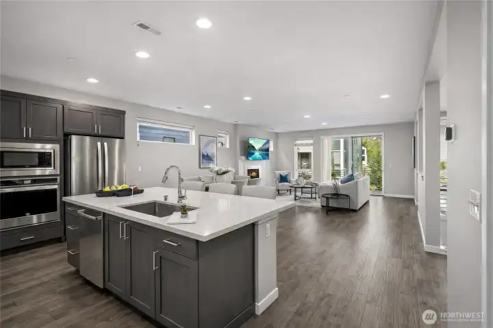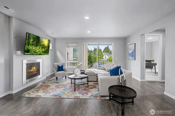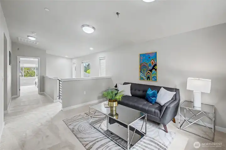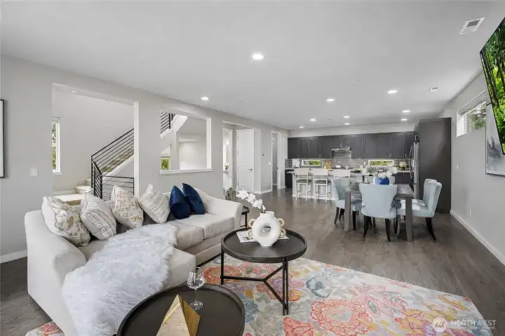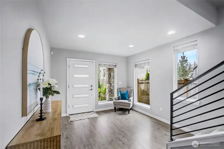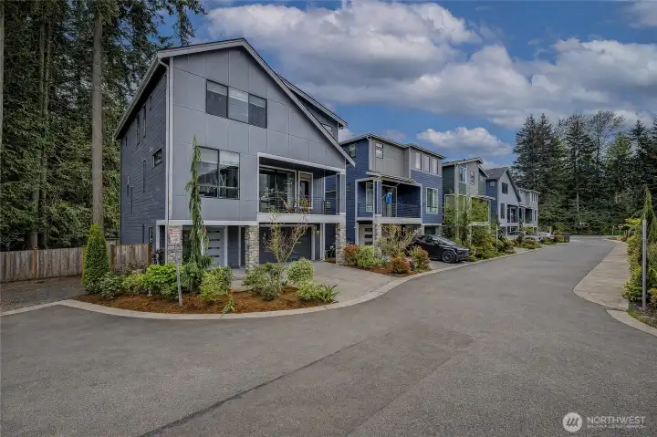 Welcome to this beautifully refreshed, move-in ready North-facing End home offering a versatile 3-story layout with 4 bedrooms, den/office, and loft. Filled with ample natural light, this thoughtfully designed home has room for everyone, including a private entry-level ensuite ideal for guests or multi-gen living. Fresh interior paint, new carpet, and LVP flooring create a crisp, modern feel, while A/C, fiber internet, Tesla EV charger, and tankless water heater add everyday comfort and convenience. The open-concept main level features a spacious kitchen with large island, pantry, stainless appliances, Gas Stove and seamless flow to the dining and living areas, with access to a covered outdoor space perfect for entertaining. Enjoy a fully fenced, low-maintenance yard plus neighboring community open space and park just beyond the fence for added room to gather and unwind. Oversized 2-car garage. Seller-provided 1-year home warranty adds peace of mind. Stylish, spacious, and ideally located in the sought-after Northshore School District—this is the one, Bring your OFFERS!