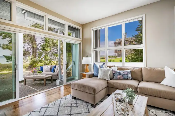 If you’ve been waiting for a ground-floor Beachwalker Villa, this is the one. These rarely come up—and once you’re here, it’s easy to see why. Just 30 steps from the water’s edge, this condo puts you right in the middle of everything that makes Semiahmoo so special. Walk out your door, feel the salt air, and in seconds you’re on the beach watching the sunset or taking in the twinkling lights of White Rock. Inside, the space feels open and easy, with walls of windows that keep the views front and center. Classic hardwood floors, granite surfaces, and detailed tile work give the home a quality feel throughout. The layout just works—open living, two bed/2 bath that make it easy for everyday living or hosting guests. But honestly, it’s the outdoor space that steals the show. A gated courtyard patio greets you at the entry, and out back, the expansive 50’ west-facing patio is something you just don’t find. It’s like having your own private front row seat to the water. From here, you’re a short walk to the marina, resort, and miles of shoreline trails. Grab coffee, go for a bike ride, or just wander the beach—it’s all right here. Canada is about 15 minutes away for a quick change of scenery. Beachwalker Villas also offers a private sport court and storage for kayaks and bikes. Nightly rentals are allowed, giving you flexibility to enjoy it or generate income. This is beach living the way it’s meant to be—simple, beautiful, and just a little hard to leave.