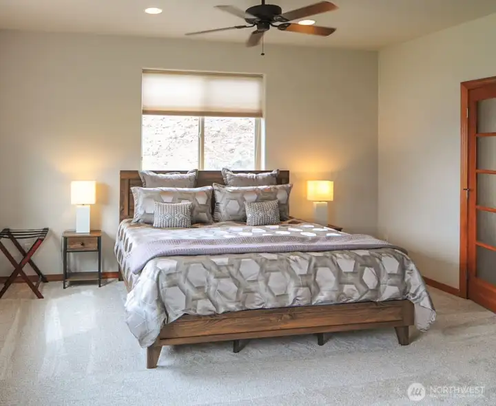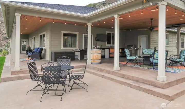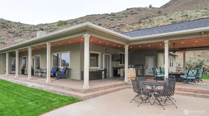 LUXURY ON 20 ACRES! Enjoy spectacular panoramic views from this thoughtfully designed, meticulously maintained 3 bedroom, 3 bath home with quality through-out. You are greeted to a grand entry with slate flooring. Soaring vaulted ceilings and plenty of windows create an abundance of natural light in the main living area that features a striking floor to ceiling gas/wood fireplace. Spacious kitchen includes beautiful granite counters, tile flooring, oversized island, pantry and induction stove-top. The primary bedroom suite has a gas fireplace, copper sinks, jetted tub and a gorgeous tile & glass walk-in shower. Large laundry area with plenty of storage. Central vacuum system. Enjoy wonderfully designed covered outdoor living areas featuring misters, sink, fridge, ice maker, fire-pit, water fountain just off the salt water pool. Ample parking areas including 2-30amp RV hook-ups, 900 sq. ft. shop with heat & AC, and air compressor. Unique, 20 ft. deep in-ground storage container.