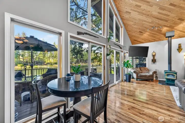 Mason Lake Waterfront Retreat – 3 Bed, 2 Bath with Upgrades & Guest Spaces Enjoy lakefront living at its best in this beautifully updated 3-bedroom, 2-bath home on Mason Lake. The main living area features vaulted ceilings and large picture windows that fill the space with natural light and showcase stunning lake views. Take it all in from the spacious Trex deck or head out on the water from your new dock with motorized boat lift. The outdoor space is designed for relaxing and entertaining, featuring a hot tub, fire pit, and a large lower-level patio overlooking the lake. The lower level includes two oversized bedrooms, each with its own private entrance—perfect for guests or added privacy. Inside, the home offers a stylish kitchen with granite countertops and a versatile loft for extra sleeping or living space.The property also includes two fully insulated bonus structures: the original cabin converted into a recording studio, and a newly built (2024) garage/shop ideal for projects, storage, or hobbies. A rare opportunity to own a move-in-ready waterfront home with flexibility, comfort, and incredible views.
