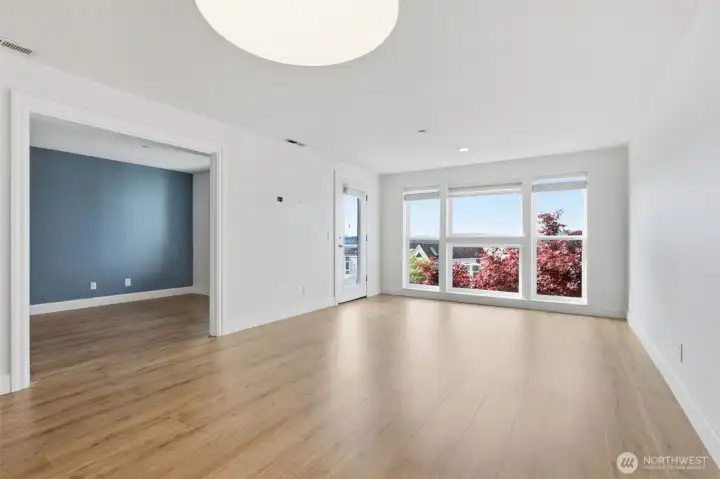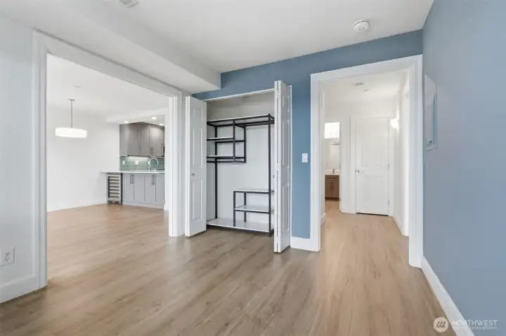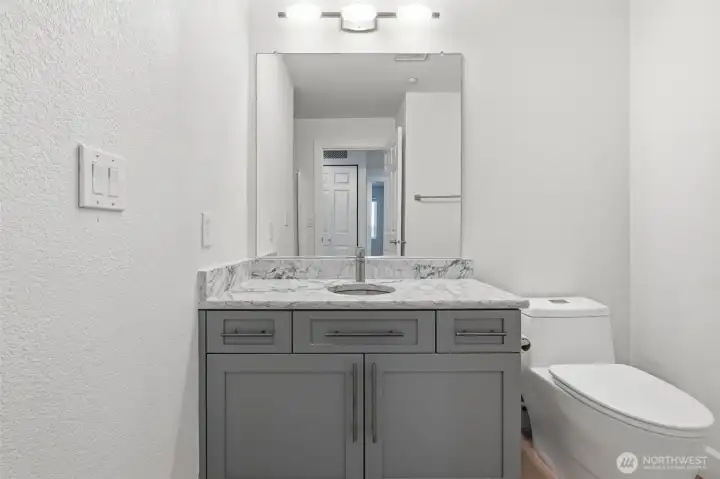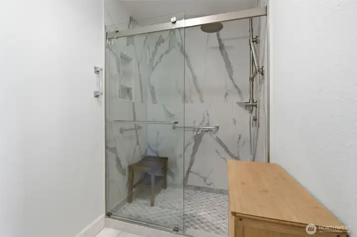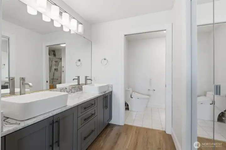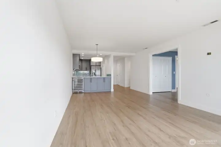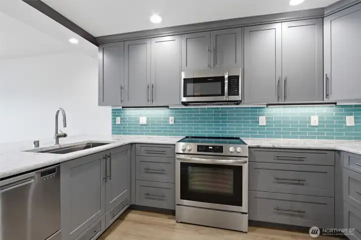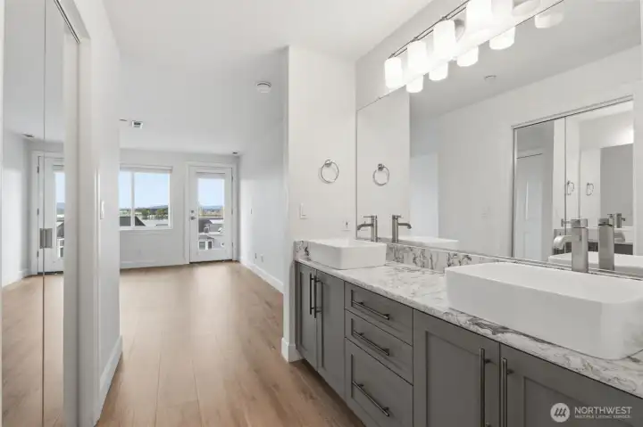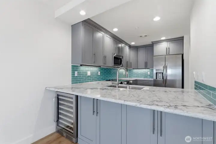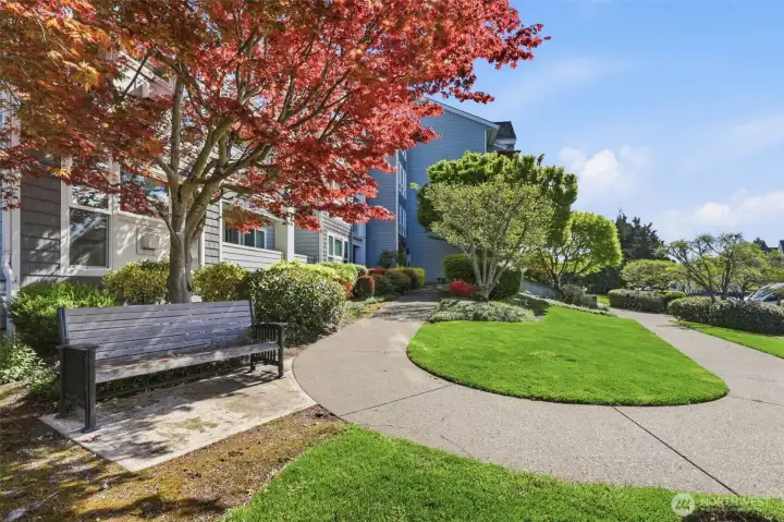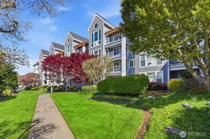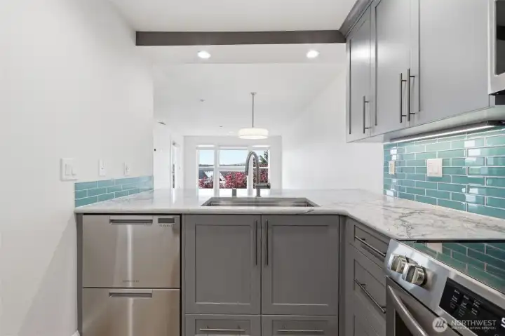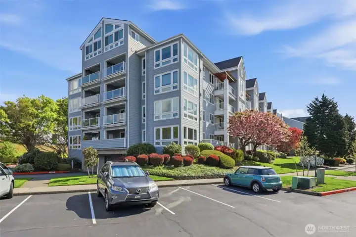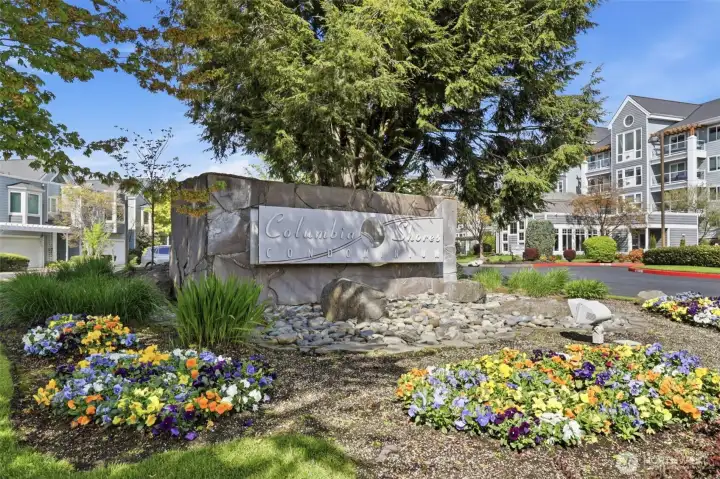 Fully remodeled with river views and a location that’s hard to find, all just a short stroll to the Vancouver waterfront. This single-level condo in Columbia Shores delivers the kind of updated, low-maintenance living you've been dreaming of. Inside, fresh interior paint and new flooring set the tone, while natural light fills the open living space. The layout flows easily from living to dining, creating a space that feels both functional and inviting. The kitchen is dialed in with quartz counters, stainless steel appliances, a wine cooler, and clean, modern finishes that make everyday living and entertaining easy. Step out to the covered deck to take in the fresh air and river views. The primary suite offers a true retreat with a beautifully remodeled bath, dual vanities, and a walk-in closet featuring custom built-ins and impressive storage. The second bedroom provides flexibility for guests or a home office. Enjoy the secure parking spot with EV charger and 9x9' storage room for your private use. Community amenities include a fitness center, pool, and meeting space, elevator access, and beautifully maintained grounds. Just minutes to waterfront trails, dining, and shopping, this is easy living in one of Vancouver’s most sought-after locations.