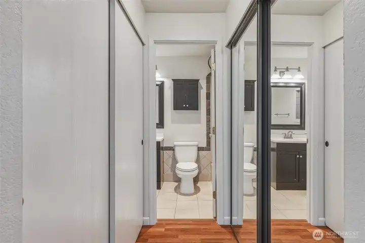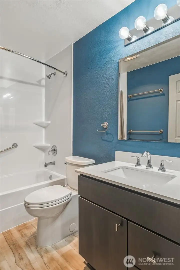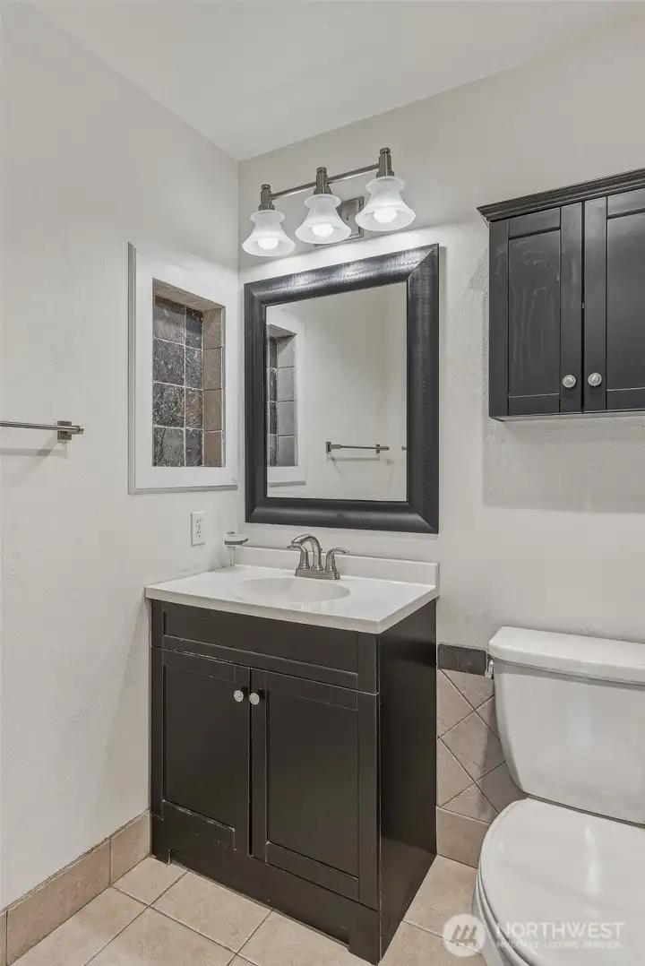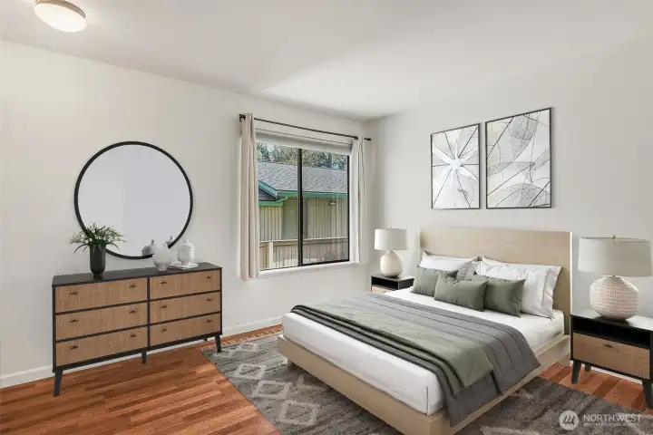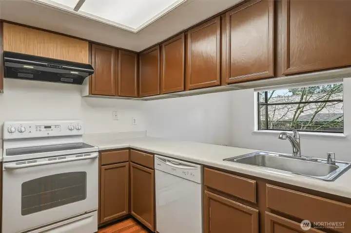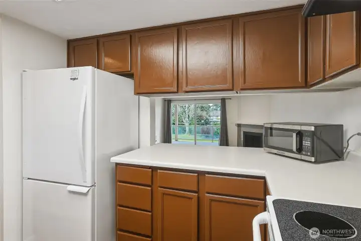 Experience a park-like setting tucked away from the hustle, offering a seamless blend of comfort and convenience in this beautifully updated one-level residence. The open floor plan flows effortlessly, anchored by a real wood-burning fireplace that creates a warm, inviting atmosphere for relaxation or entertaining. A chef-friendly kitchen boasts expansive counter space perfect for hosting. Significant recent investments provide long-term peace of mind, including a full $25k renovation of the main bathroom and a complete update of all plumbing throughout the unit. Practicality meets style with updated digital thermostats dimmable lighting, and an abundance of storage. The thoughtful layout ensures maximum privacy between sleeping quarters making it an ideal retreat for residents and guests alike. Step outside to your private balcony to overlook lush green space or take advantage of the community features including a swimming pool clubhouse sport court and exercise room. You will appreciate the private individual garage plus an additional dedicated parking spot. The location is truly unbeatable for those seeking an active lifestyle you are just a short stroll from the scenic Interurban Trail and the shores of Lake Ballinger. Commuting is effortless with the Transit Center and the Light Rail just minutes away providing quick access to downtown Seattle and the airport. With 99 Ranch Market and Country Farms nearby this home represents a rare opportunity for ease and accessibility