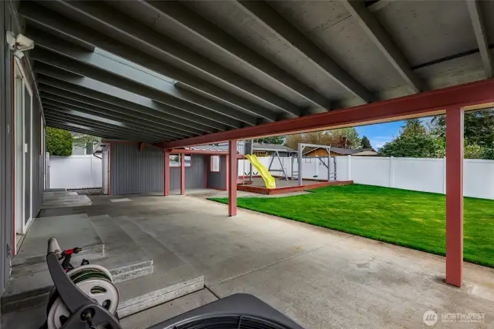 Endless opportunities for this large level sun filled backyard. To the left is the gated RV/boat parking.