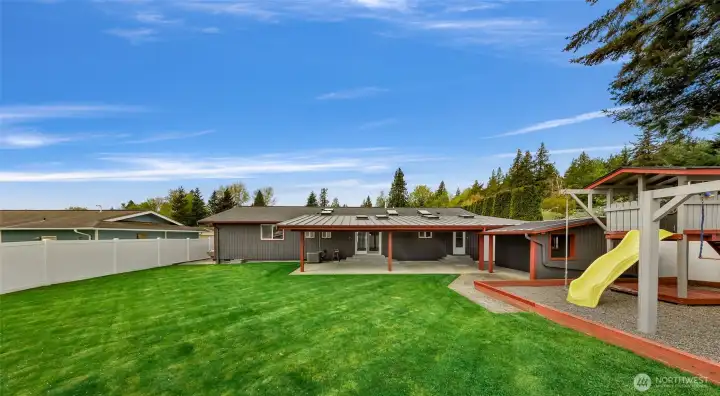 Bright sun filled flat back yard with lots of room for your gardening ideas play time or entertaining